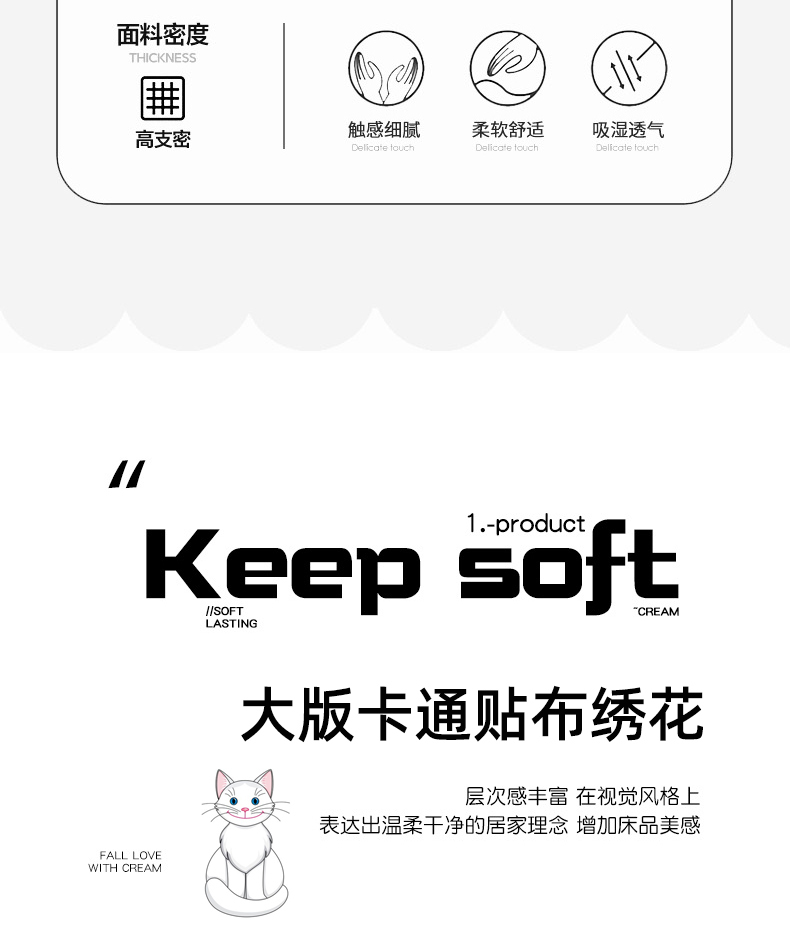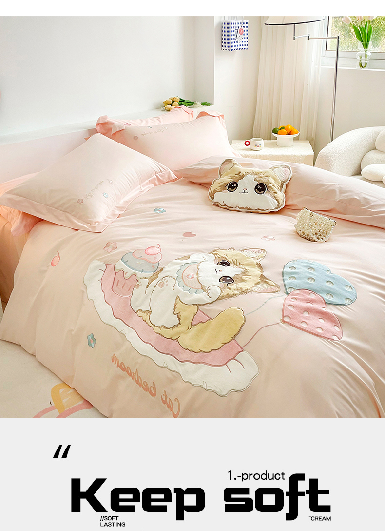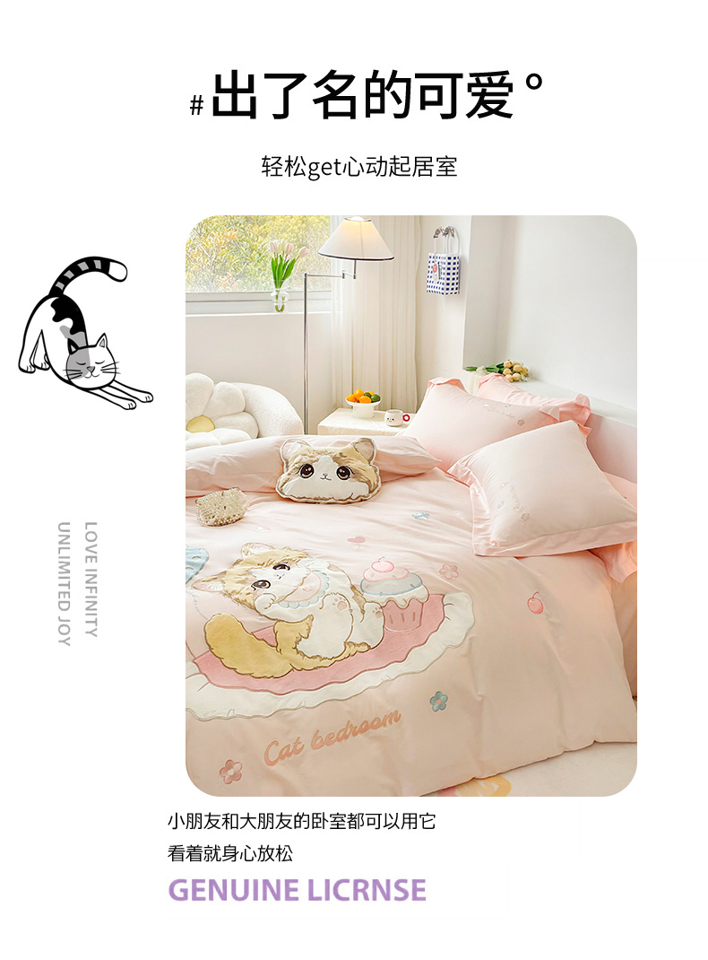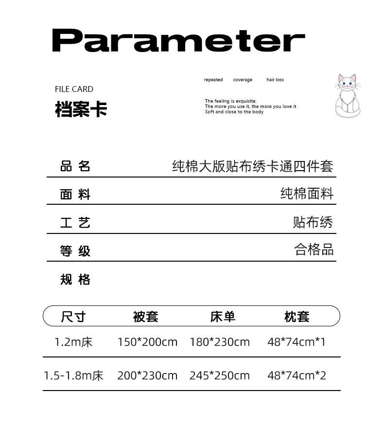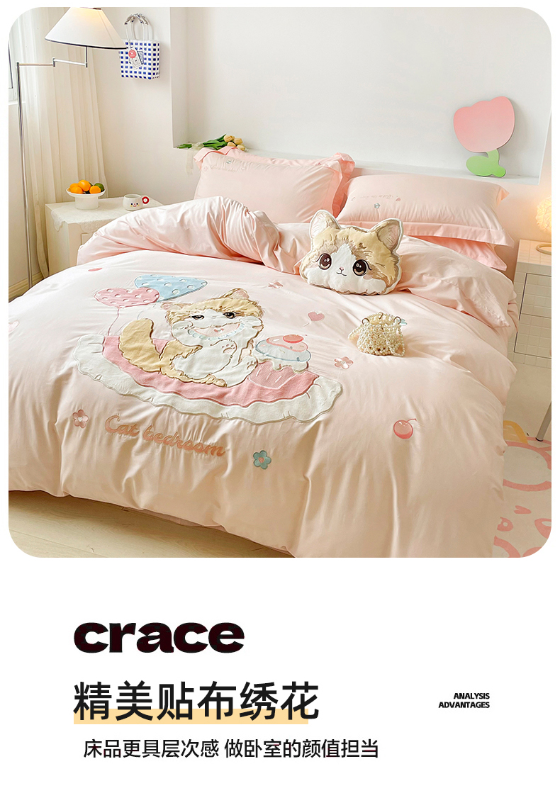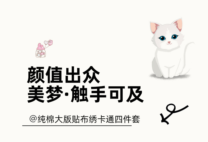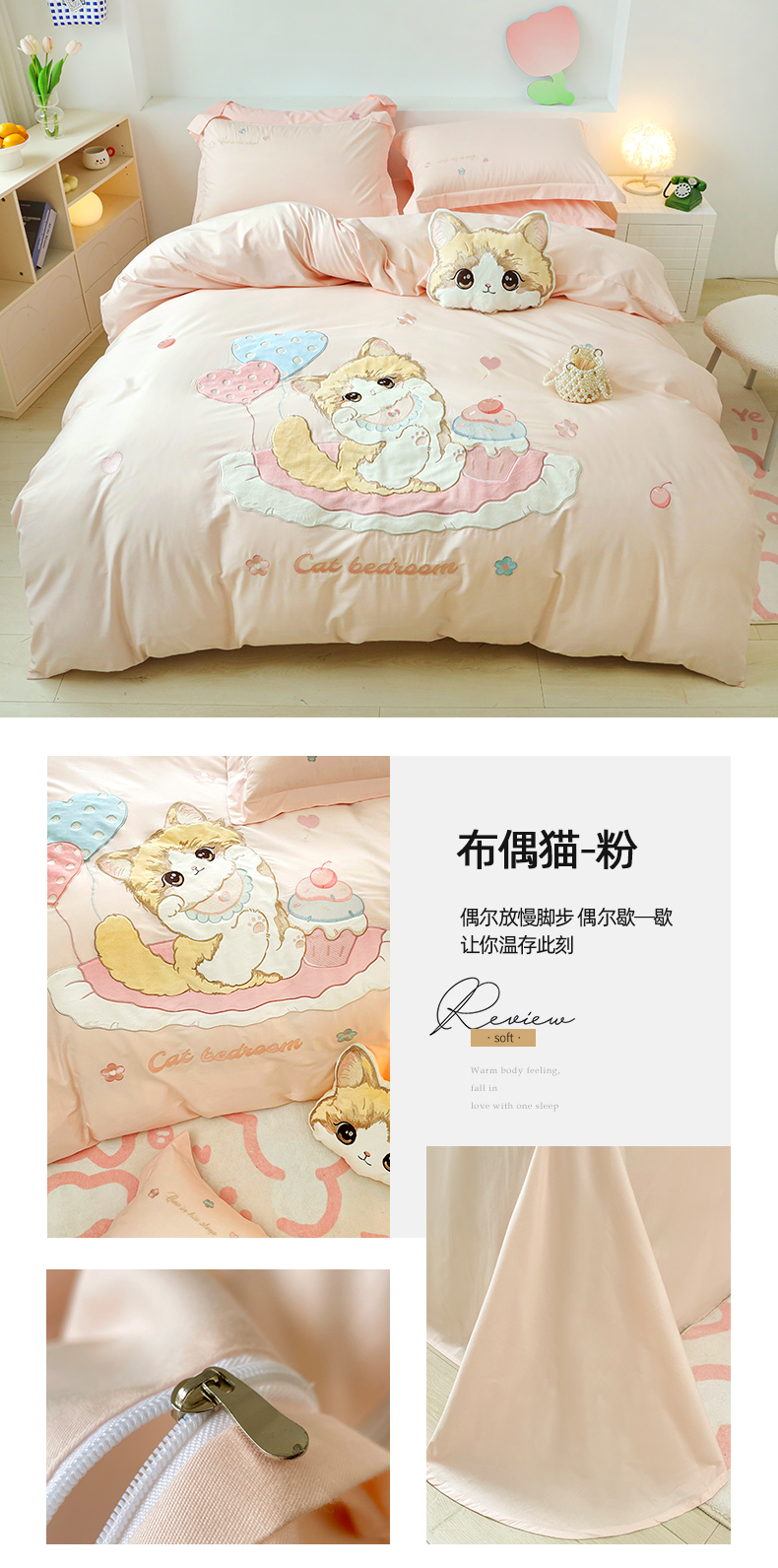 商品名称:(总)金绣美居 2025全棉大版卡通贴布绣 春夏新款四件套-布偶猫