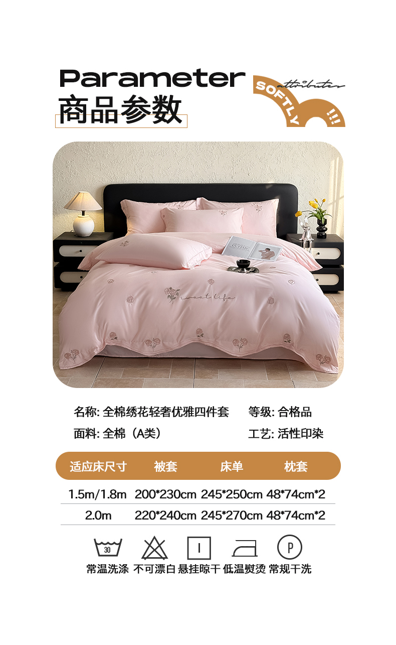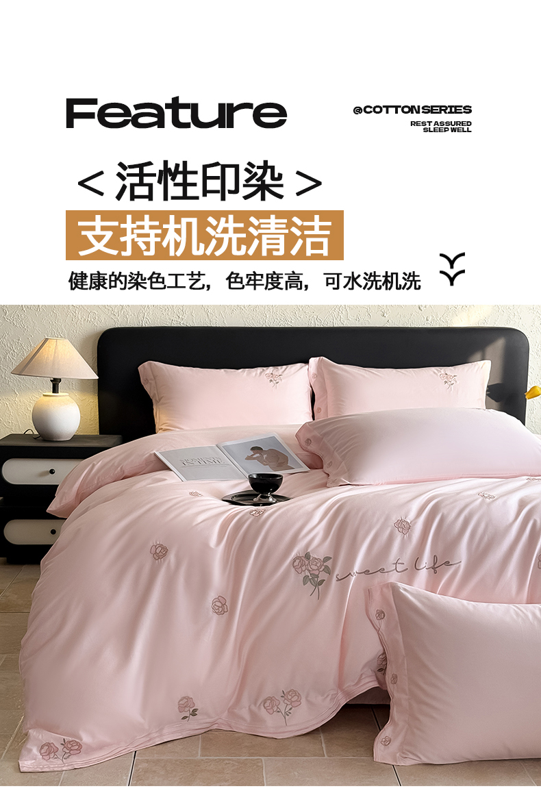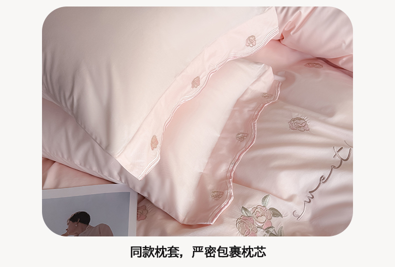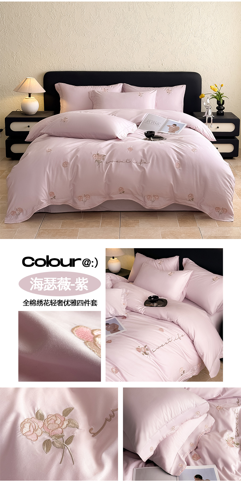 商品名称:懒猫家纺 2025新款高精密40支全棉喷气绣花四件套-海瑟薇 海瑟薇-粉