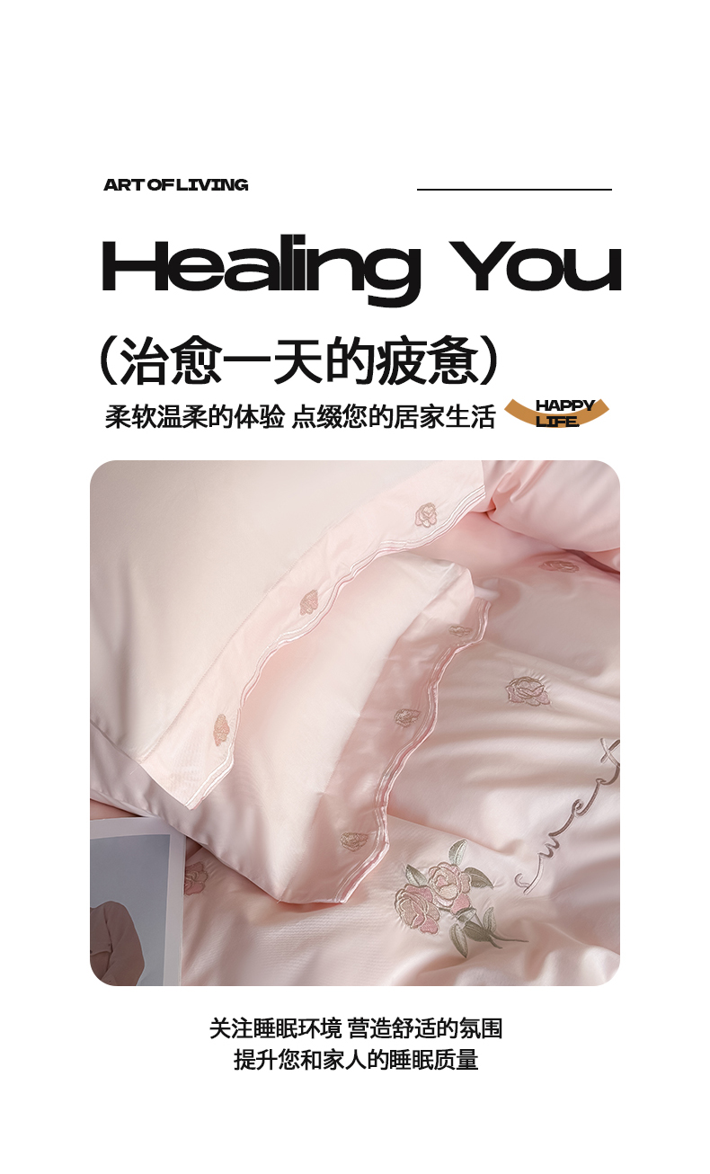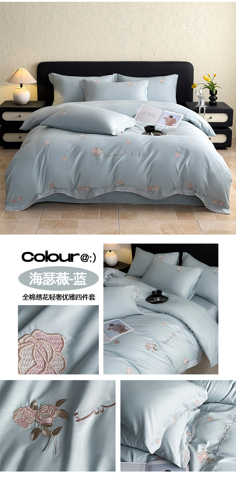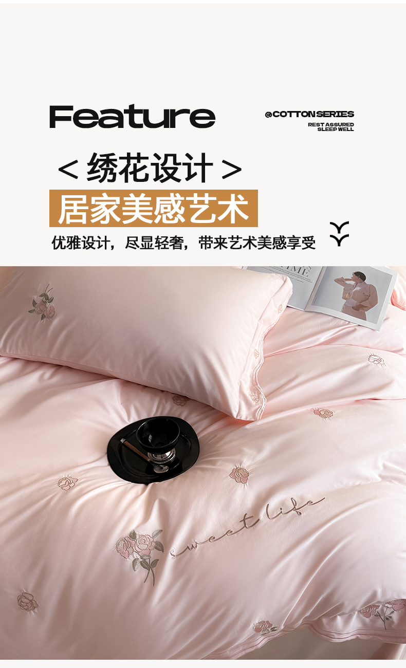 商品名称:懒猫家纺 2025新款高精密40支全棉喷气绣花四件套-海瑟薇 海瑟薇-粉