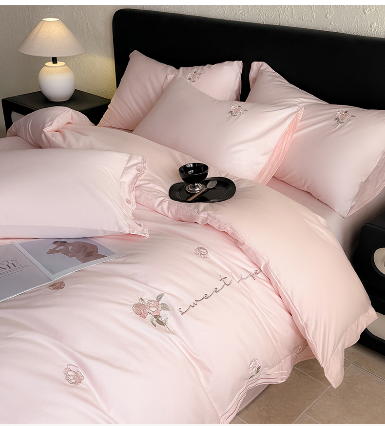 懒猫家纺 2025新款高精密40支全棉喷气绣花四件套-海瑟薇 海瑟薇-粉