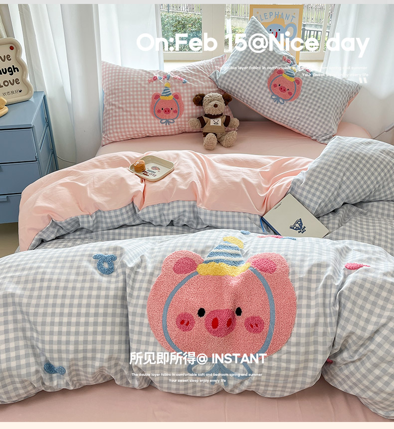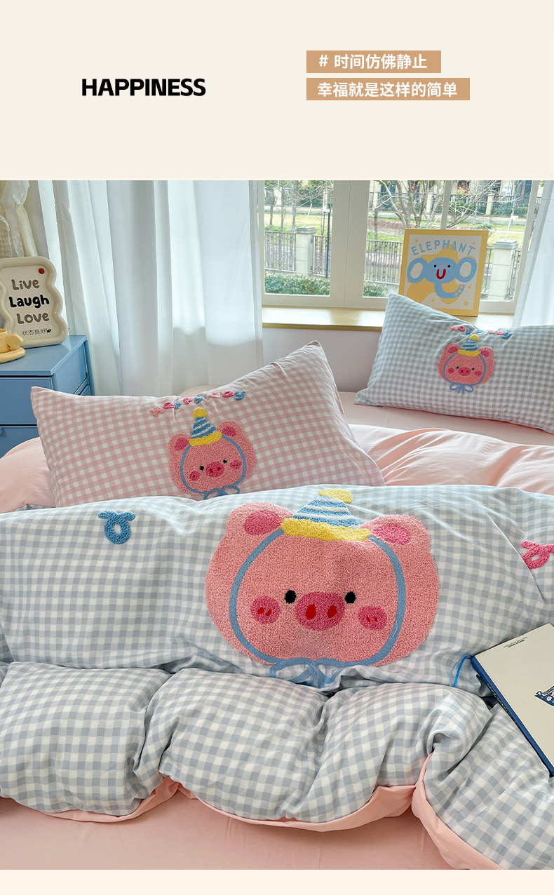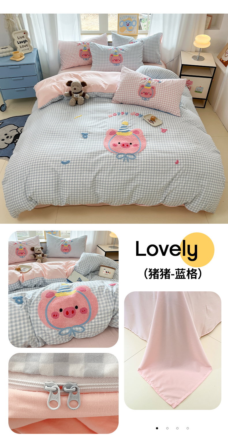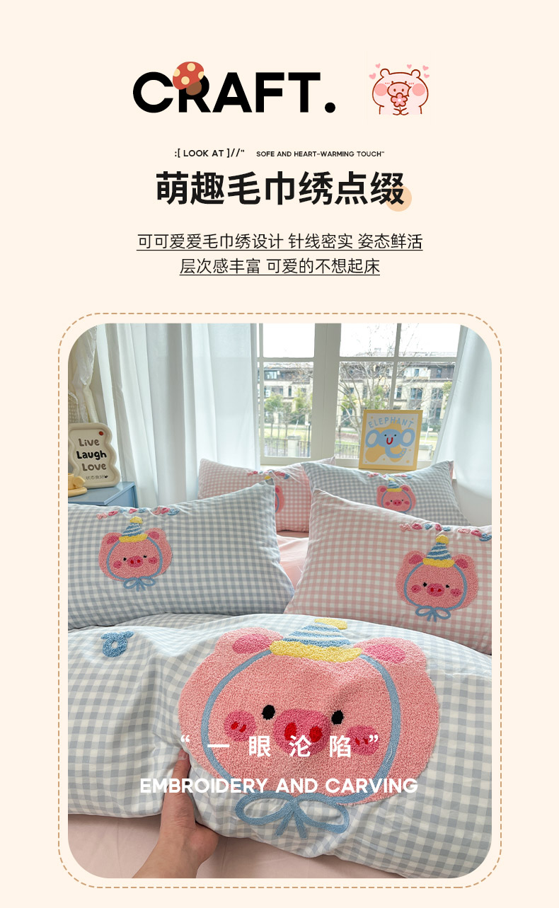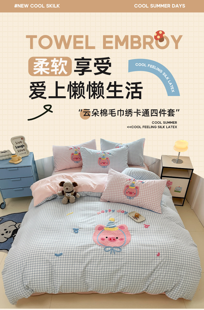 商品名称:乐坊2025新款云朵棉毛巾绣四件套 猪猪-蓝格