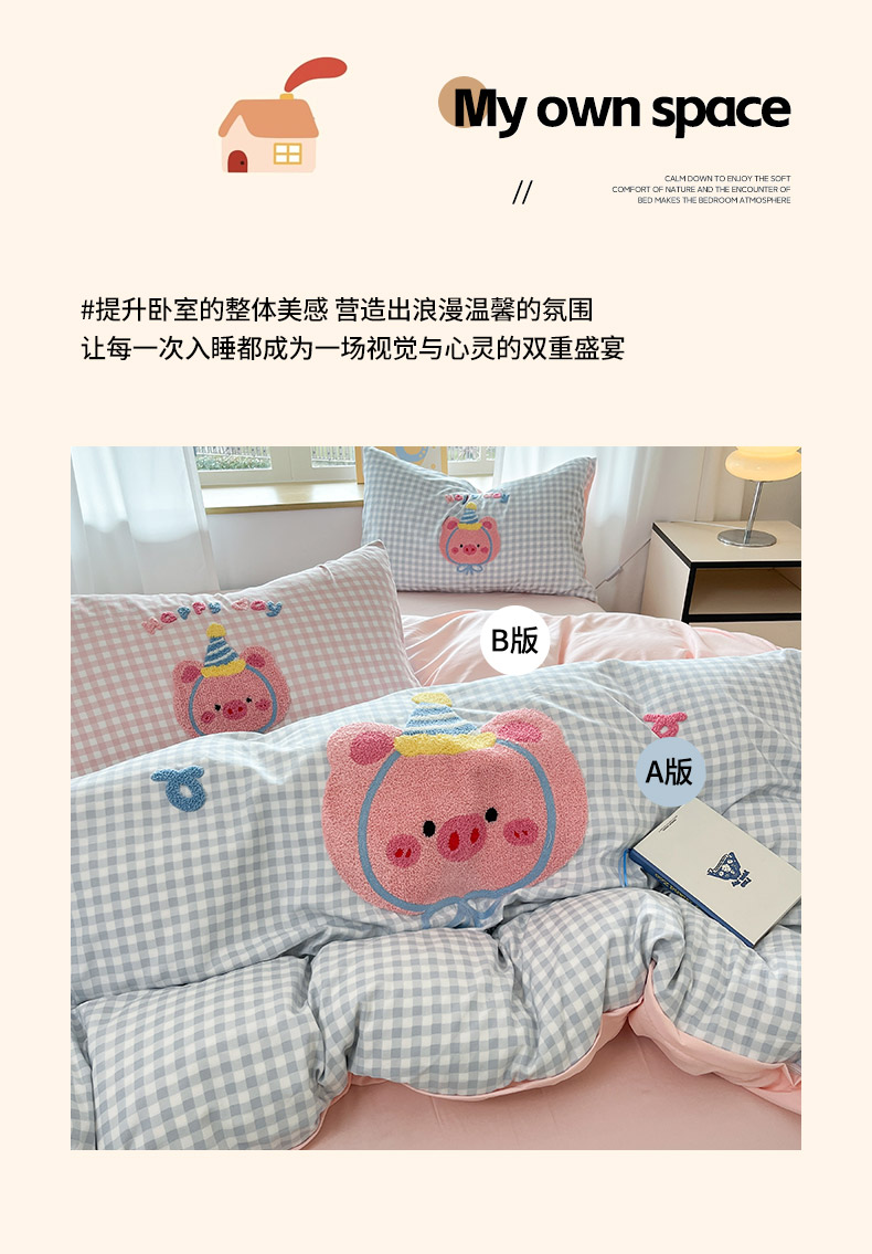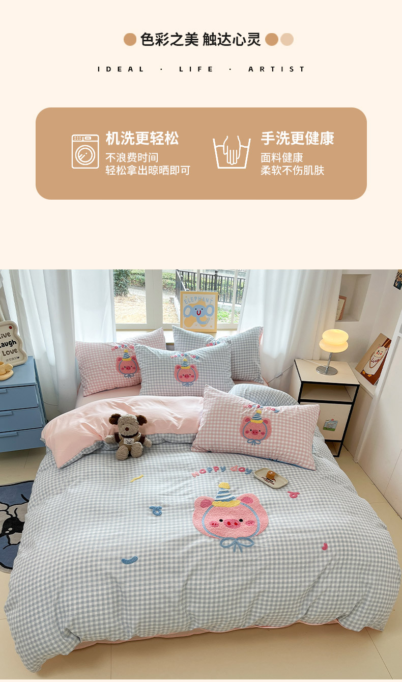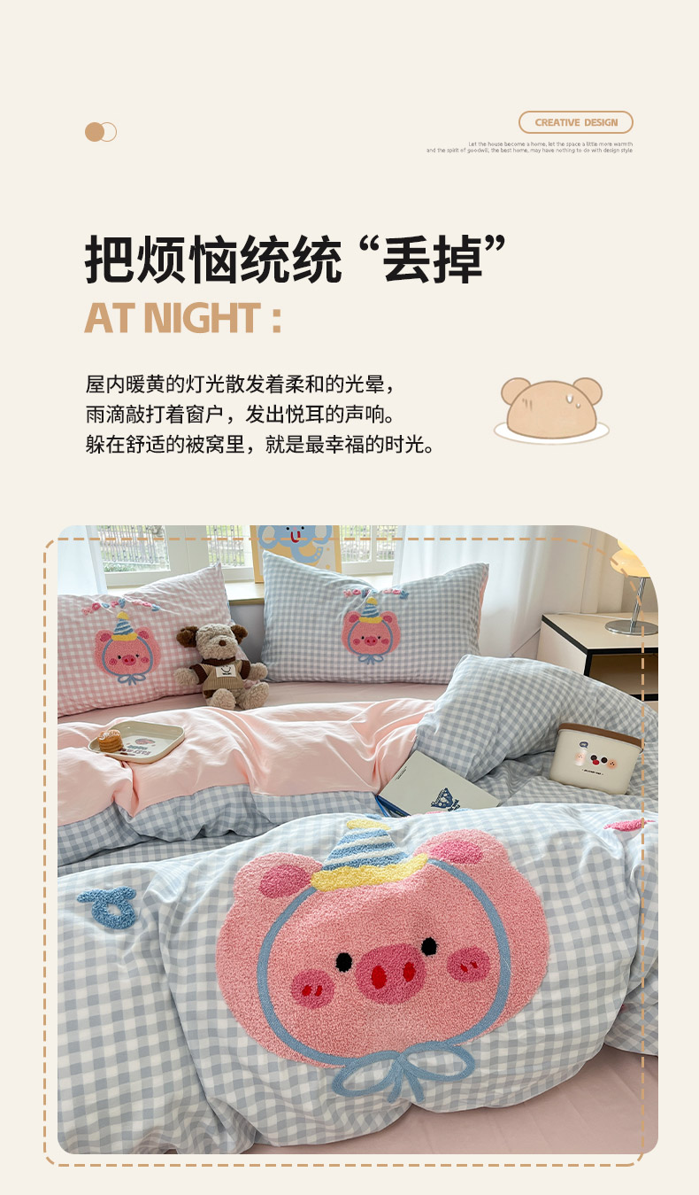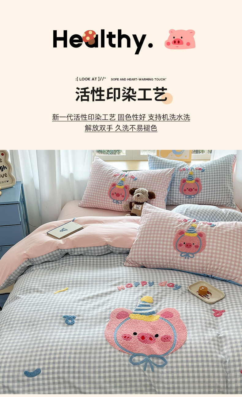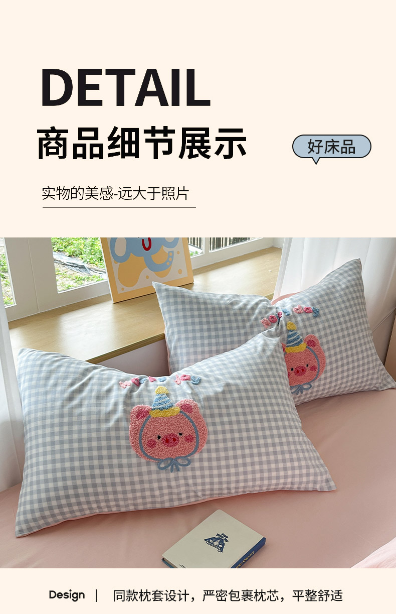 商品名称:乐坊2025新款云朵棉毛巾绣四件套 猪猪-蓝格