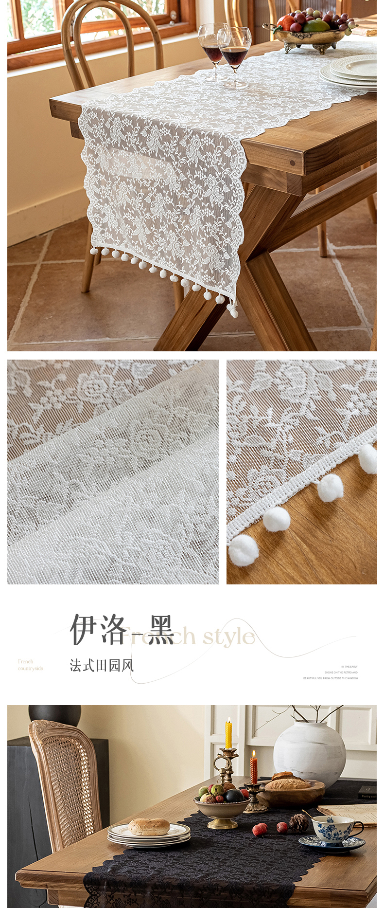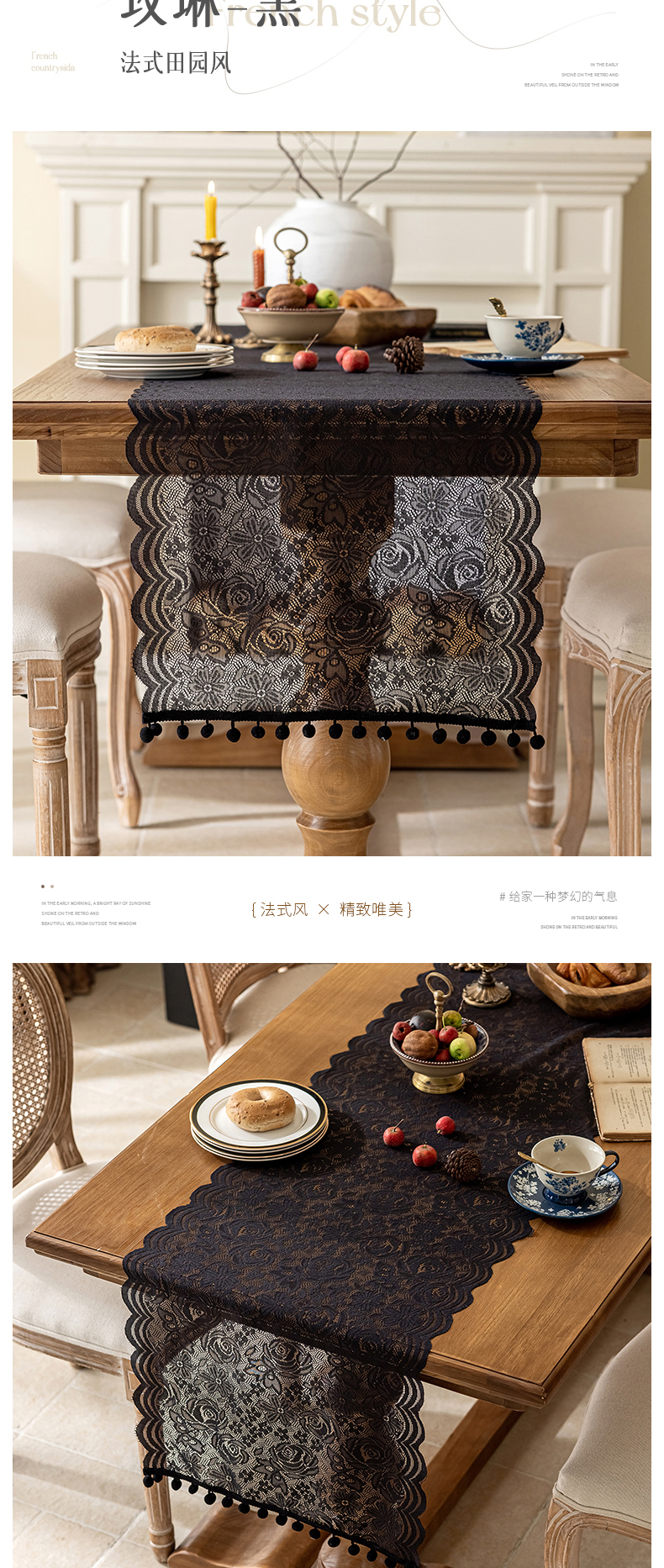 当前位置: 91家纺网 > 商品网购 > 居家布艺 > 餐桌布 > 南通大梧纺织 2025新款黛丝/玫琳/伊洛桌旗 玫琳-黑