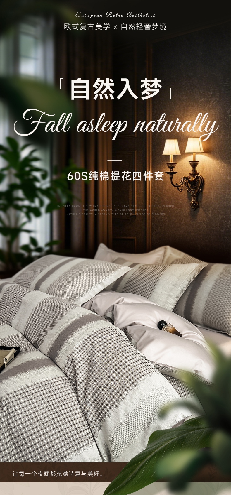 当前位置: 91家纺网 > 商品网购 > 床品套件 > 四件套 > 全棉普通四件套 > 倾慕家纺 2025新款60S提花全棉四件套 波格灰