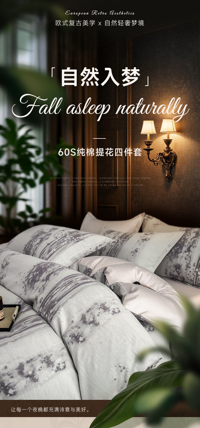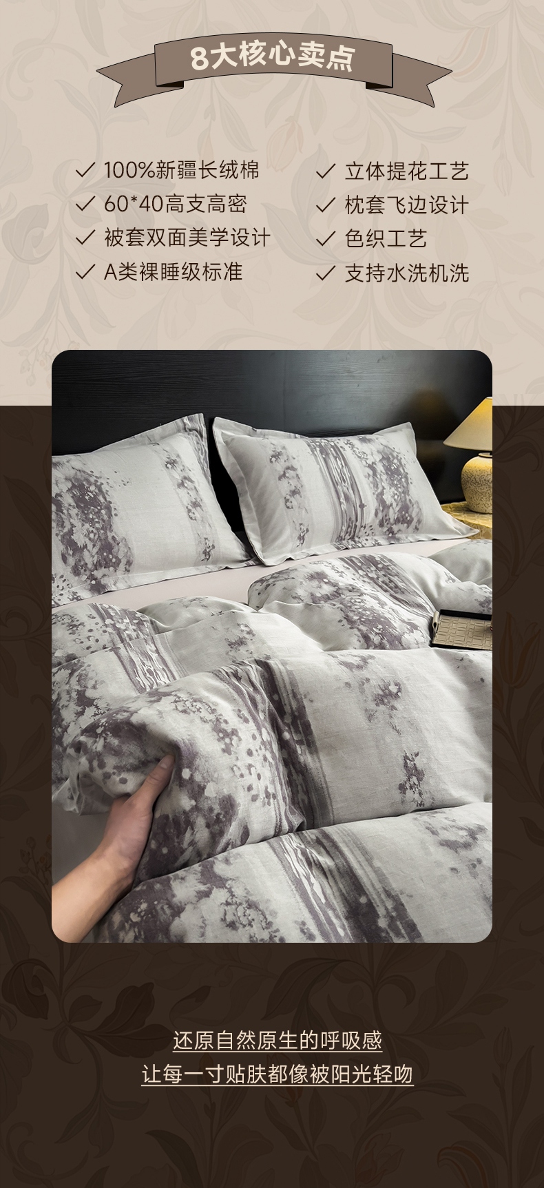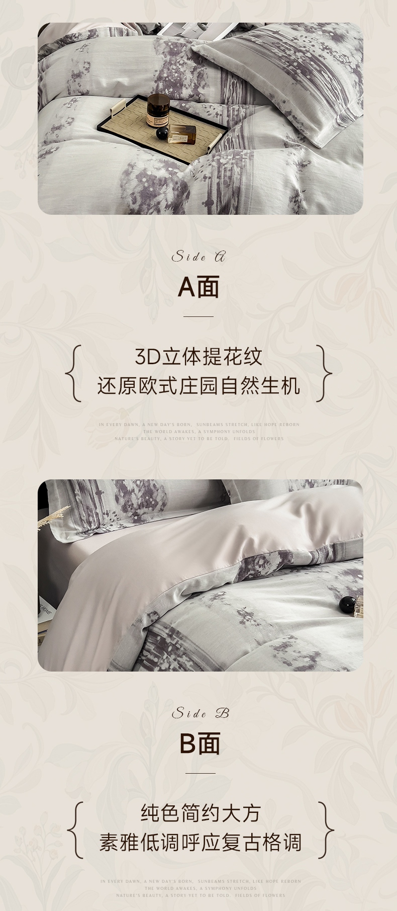 当前位置: 91家纺网 > 商品网购 > 床品套件 > 四件套 > 全棉普通四件套 > 倾慕家纺 2025新款60S提花全棉四件套 水漾紫