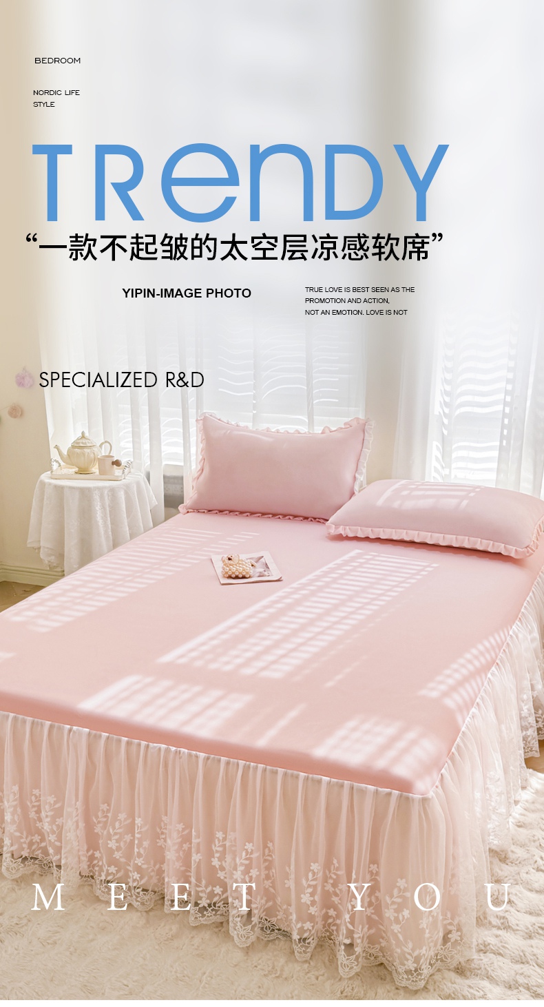 商品名称:(总)LIFE.丽芙 2025春夏新款独家研发太空层凉感软席双层蕾丝边冰丝凉席床裙款