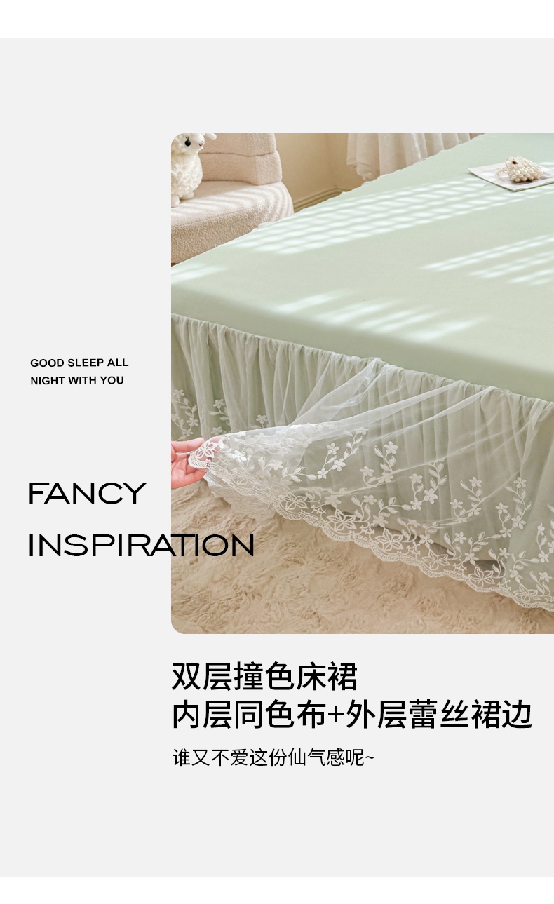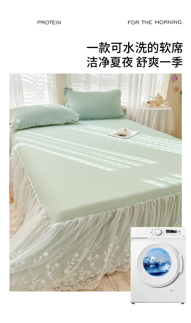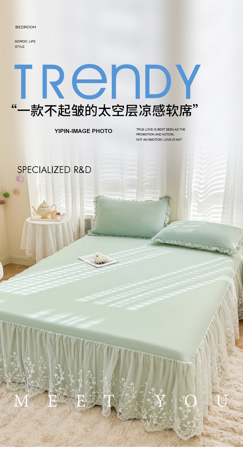 当前位置: 91家纺网 > 商品网购 > 床上用品 > 凉席 > 其他凉席 > LIFE.丽芙 2025春夏新款独家研发太空层凉感软席双层蕾丝边冰丝凉席床裙款 水绿