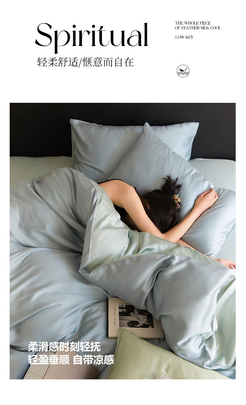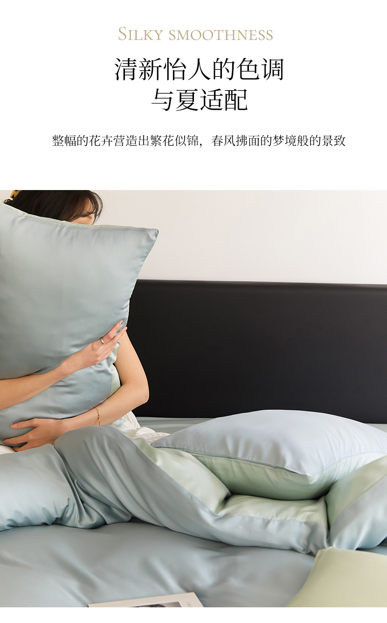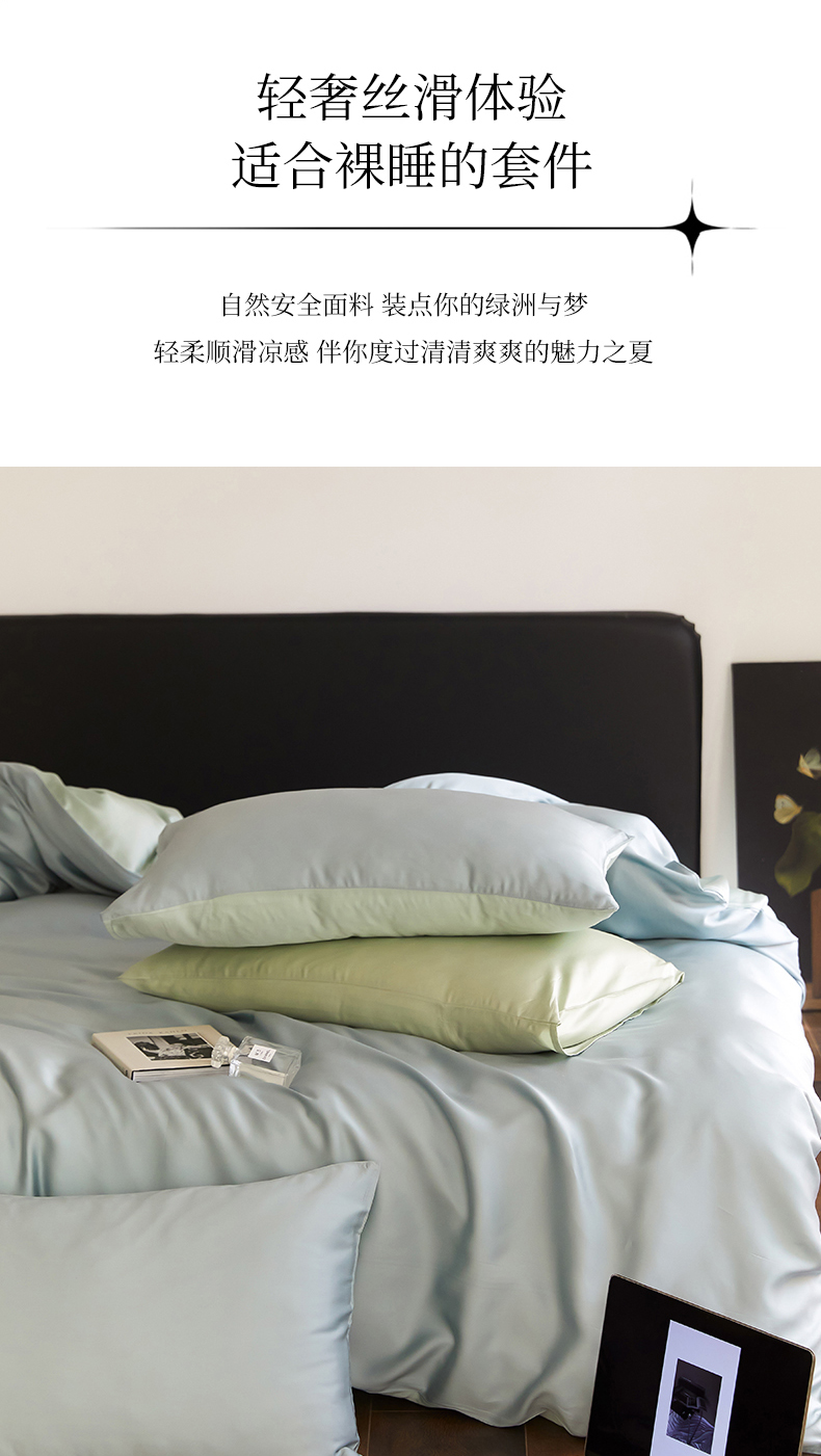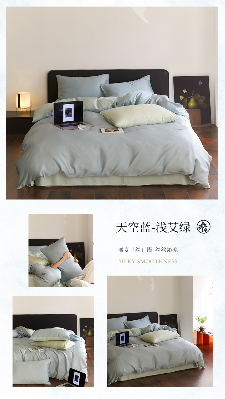 商品名称:启航家居 2025新款60s纯色兰精天丝四件套 天空蓝-浅艾绿