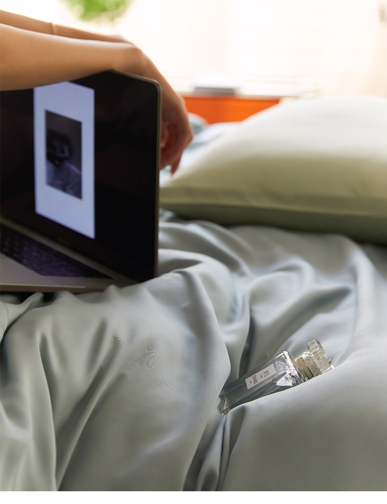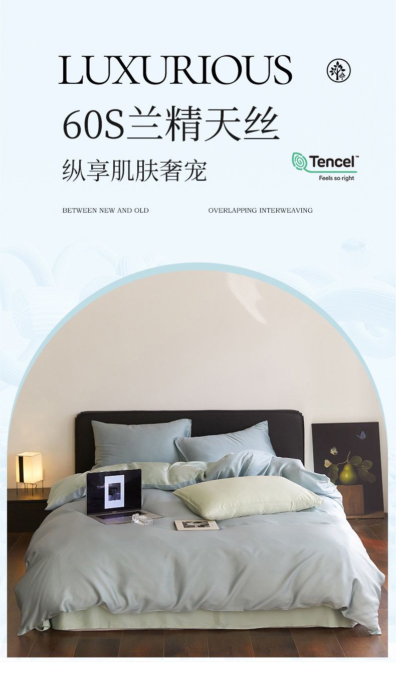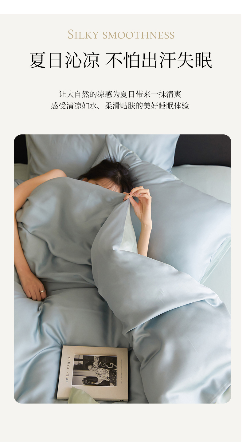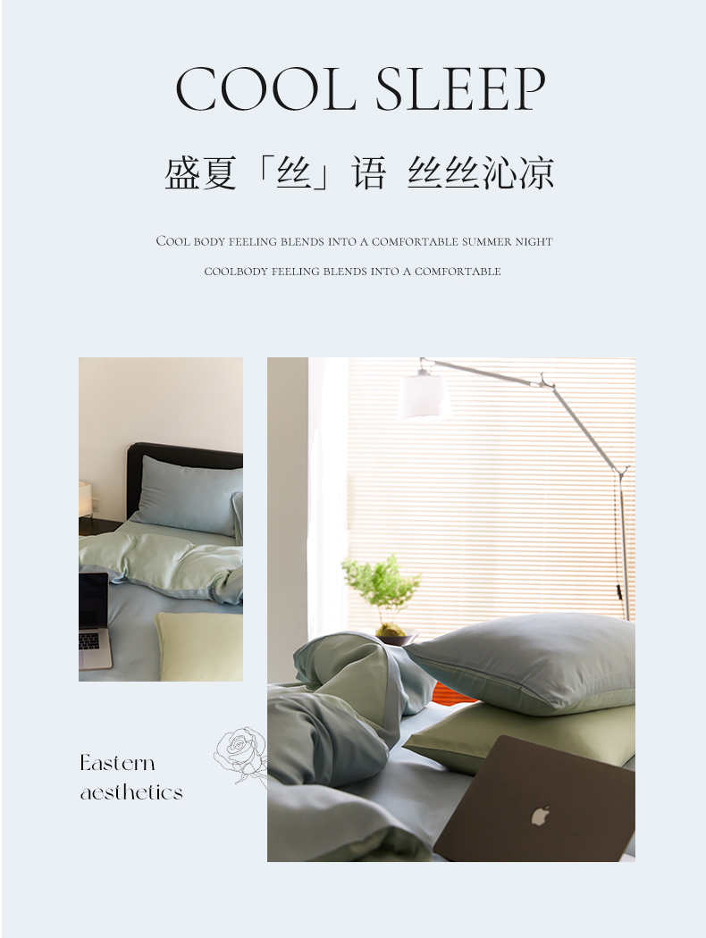 商品名称:启航家居 2025新款60s纯色兰精天丝四件套 天空蓝-浅艾绿