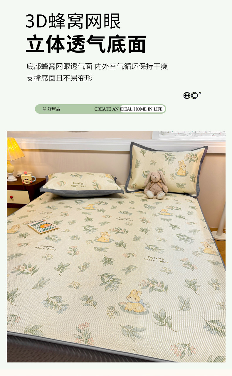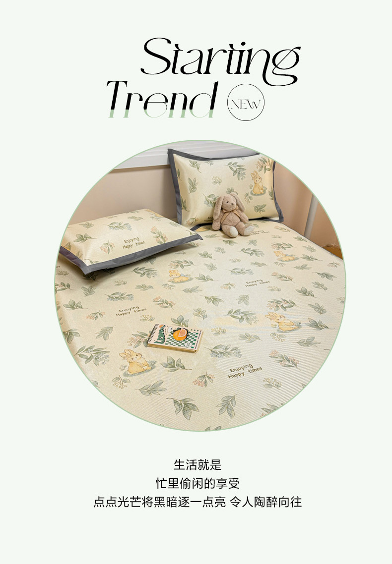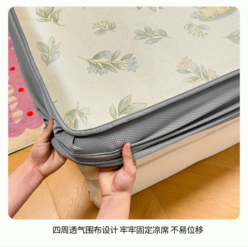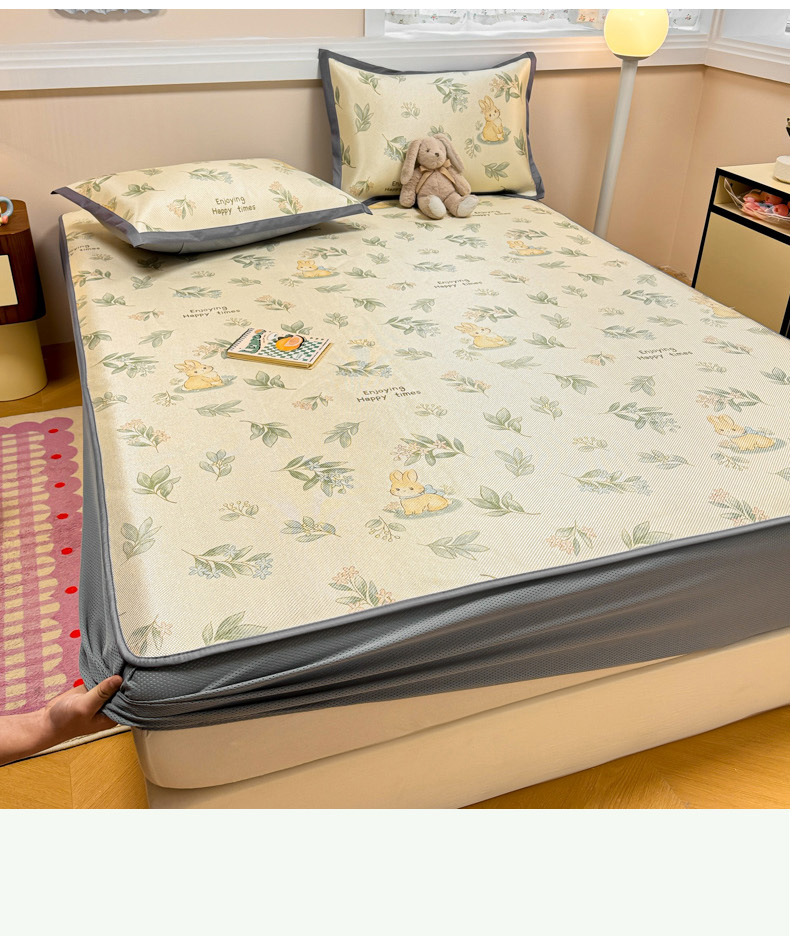 沐慕 2025新款高克重600D冰丝印花冰藤床笠 床笠-莫尼卡