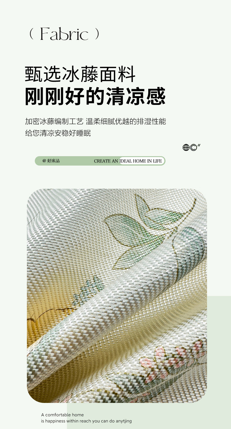 商品名称:沐慕 2025新款高克重600D冰丝印花冰藤床笠 床笠-莫尼卡