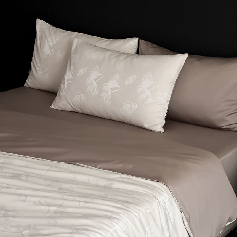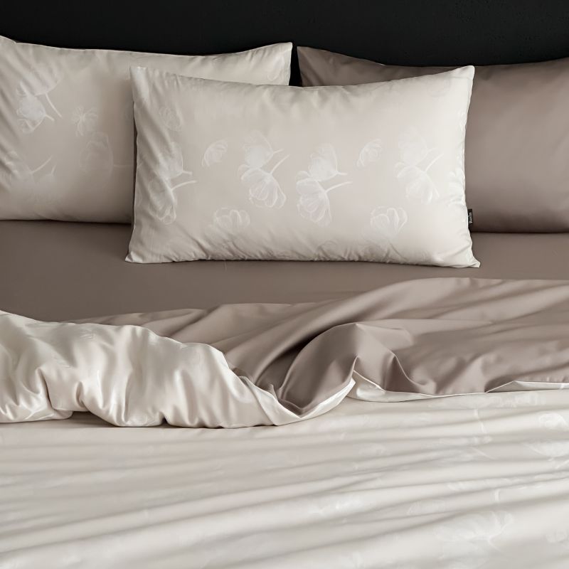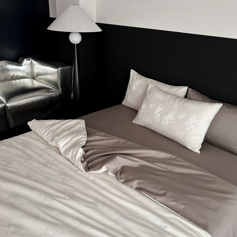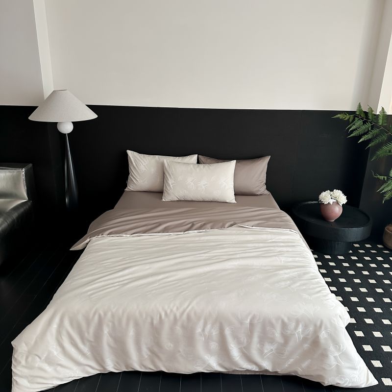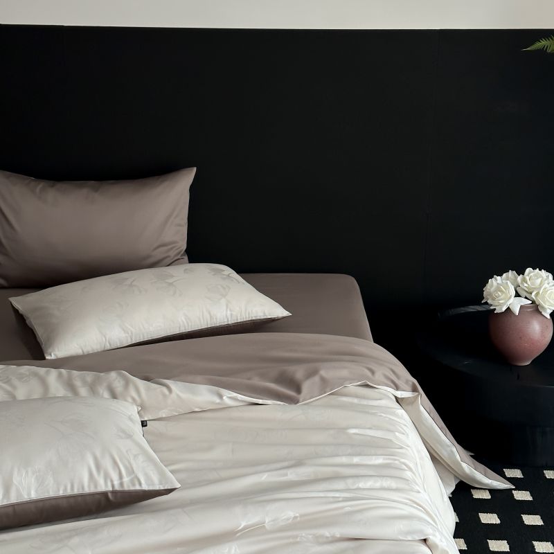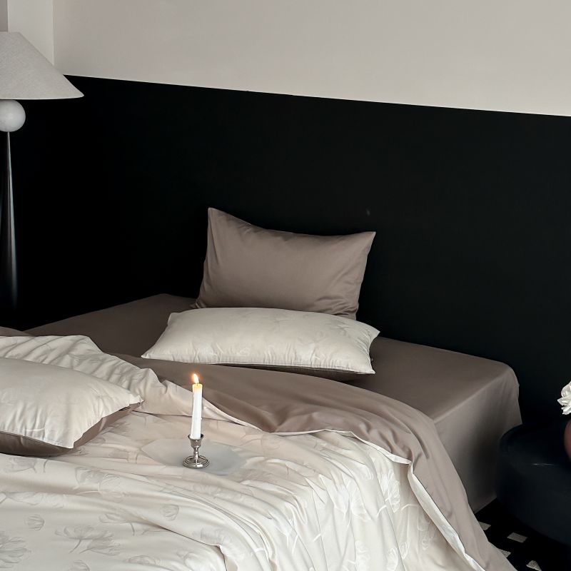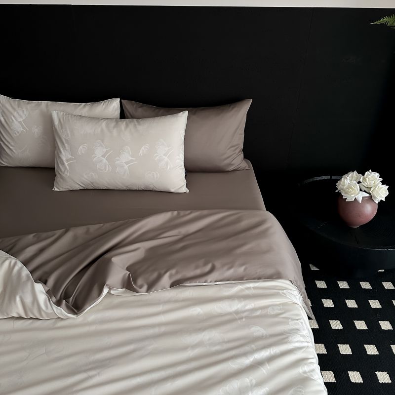 (总)玉宇阁家居 2023新款春夏60支兰精天丝拼色四件套,都市灰香槟,海盐松露,芥末黄香槟,裸粉香槟,茉莉奶绿,浅灰鹅黄,若草乳白