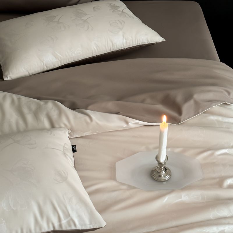 商品名称:玉宇阁2025新款100S色织天丝棉大提花四件套雪融简约白茶-简约 简约白茶
