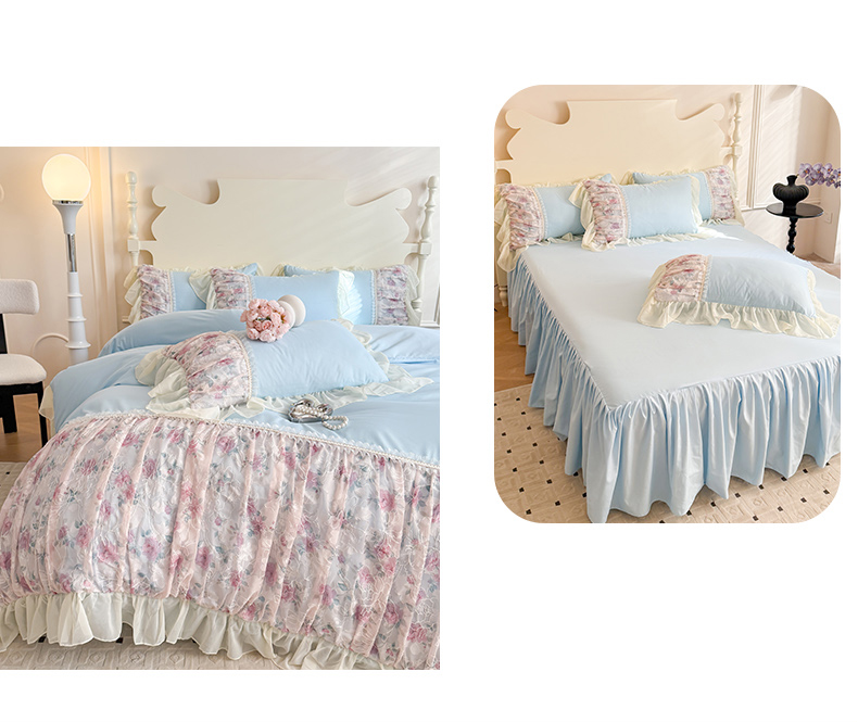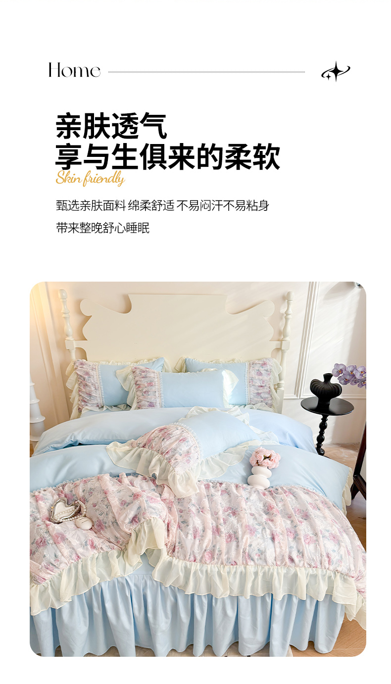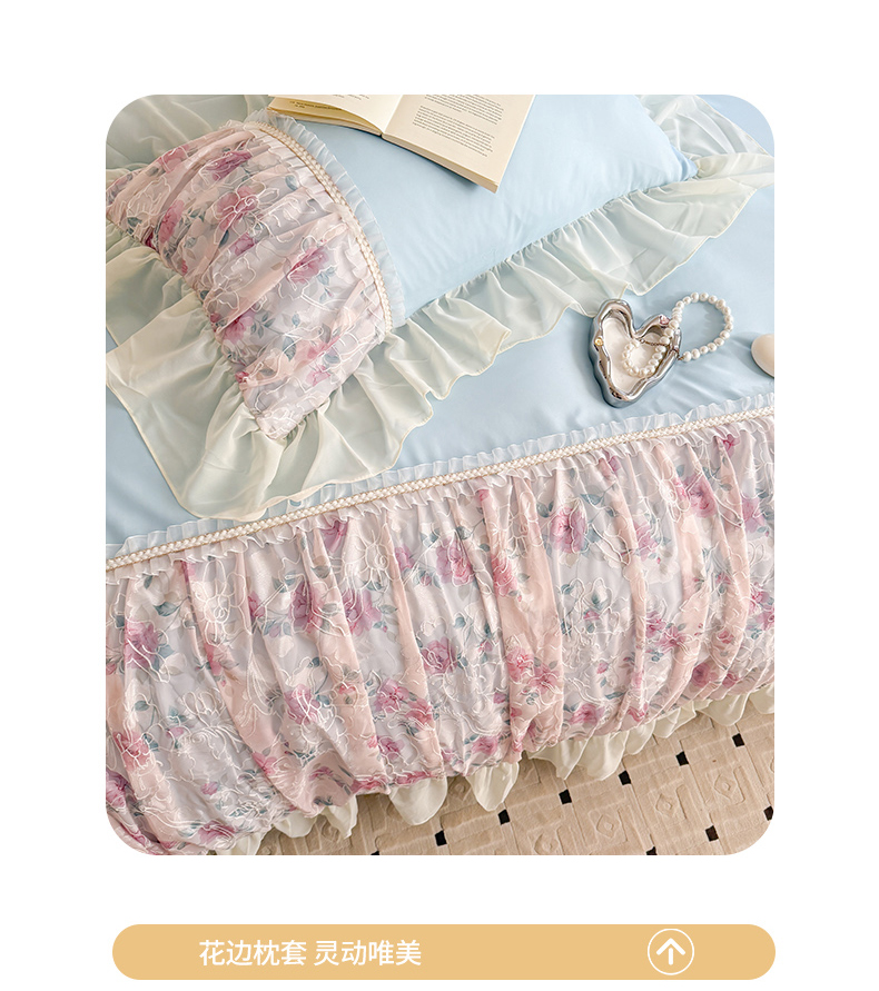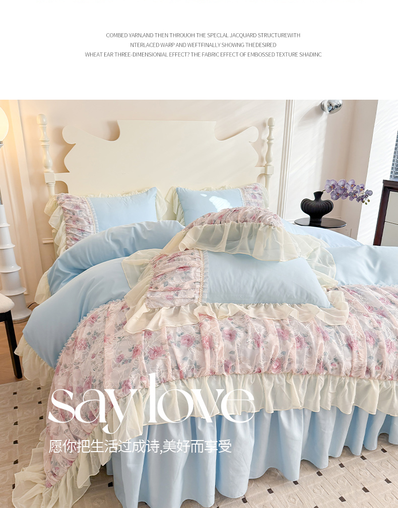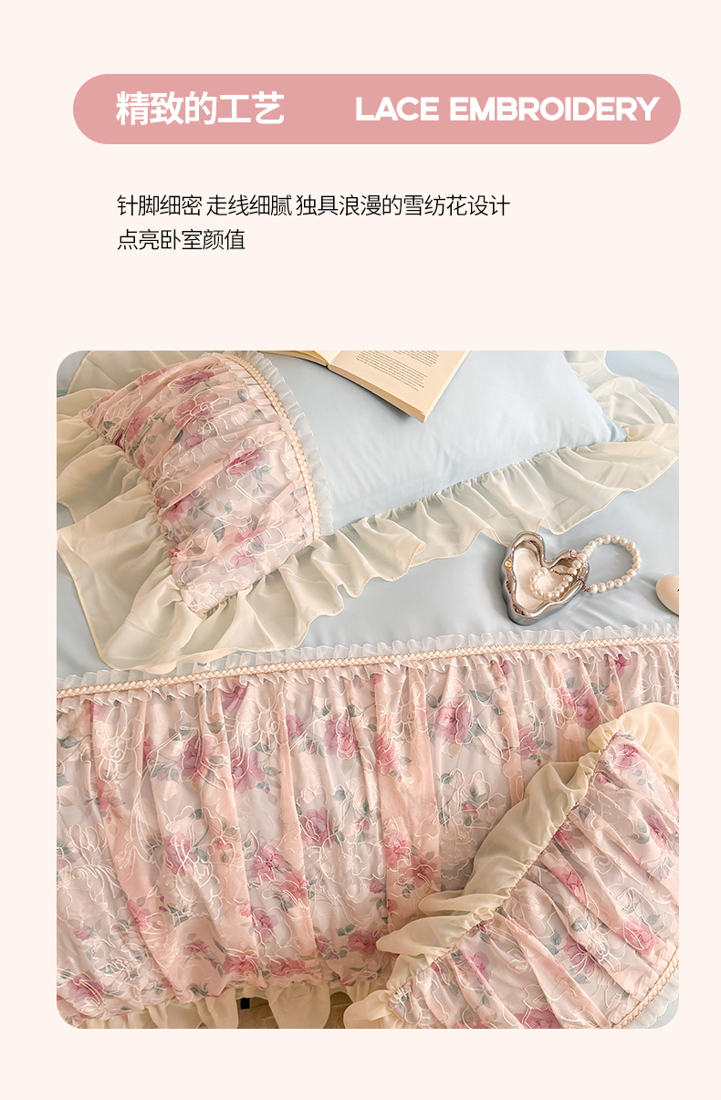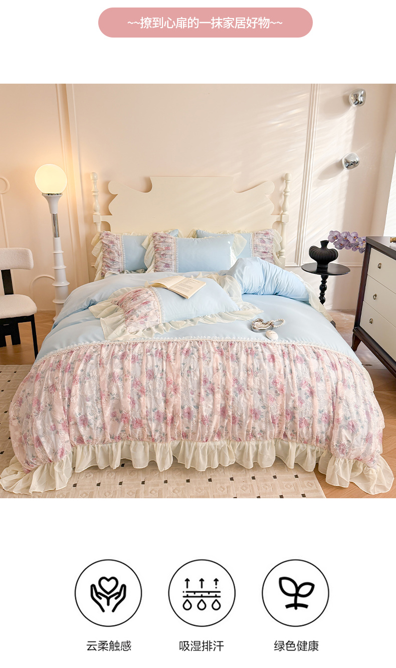 当前位置: 91家纺网 > 商品网购 > 床品套件 > 四件套 > 水洗棉四件套 > 富盛家纺 2025新款水洗亲肤棉雪纺印绣工艺四件套公主风四件套巴黎春天系列 巴黎春天-蓝