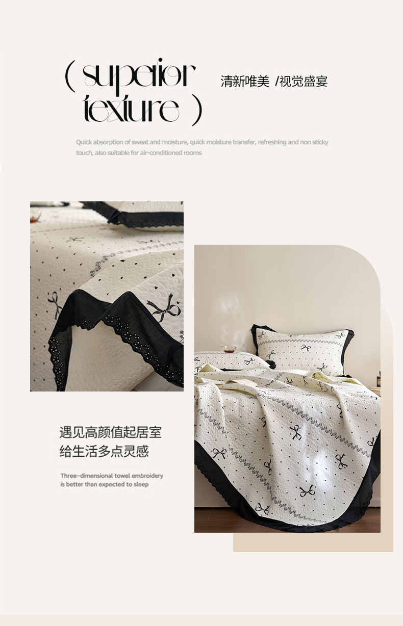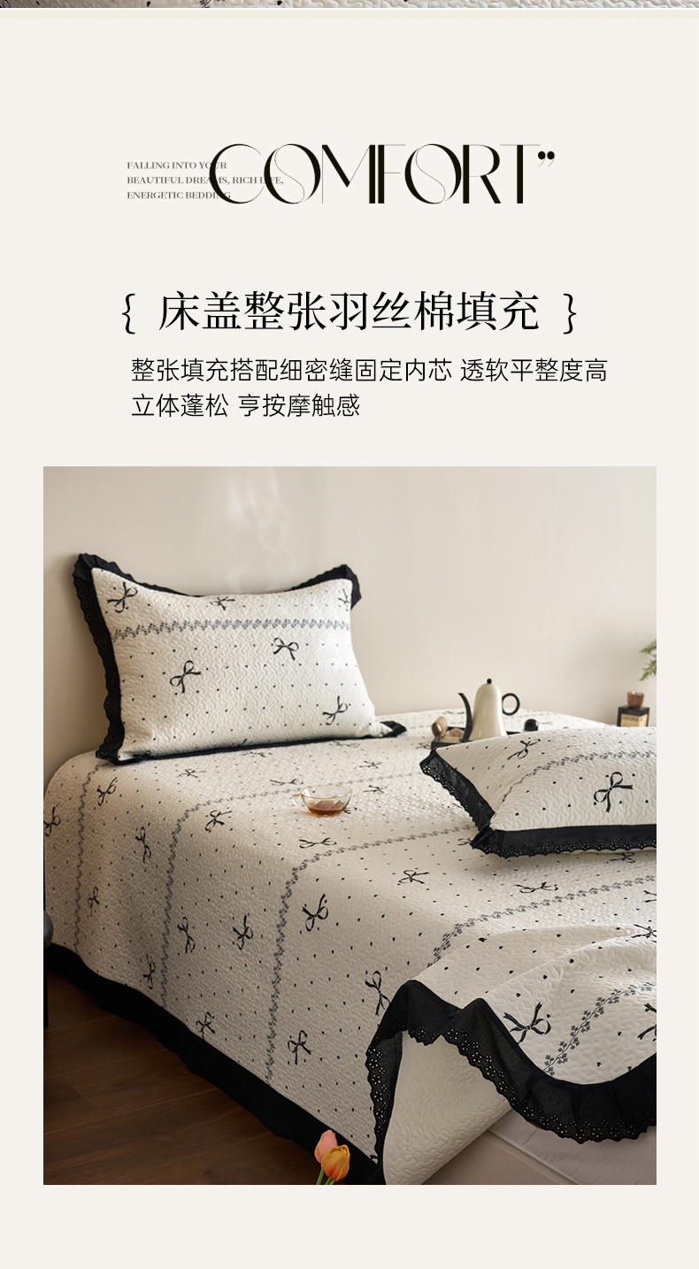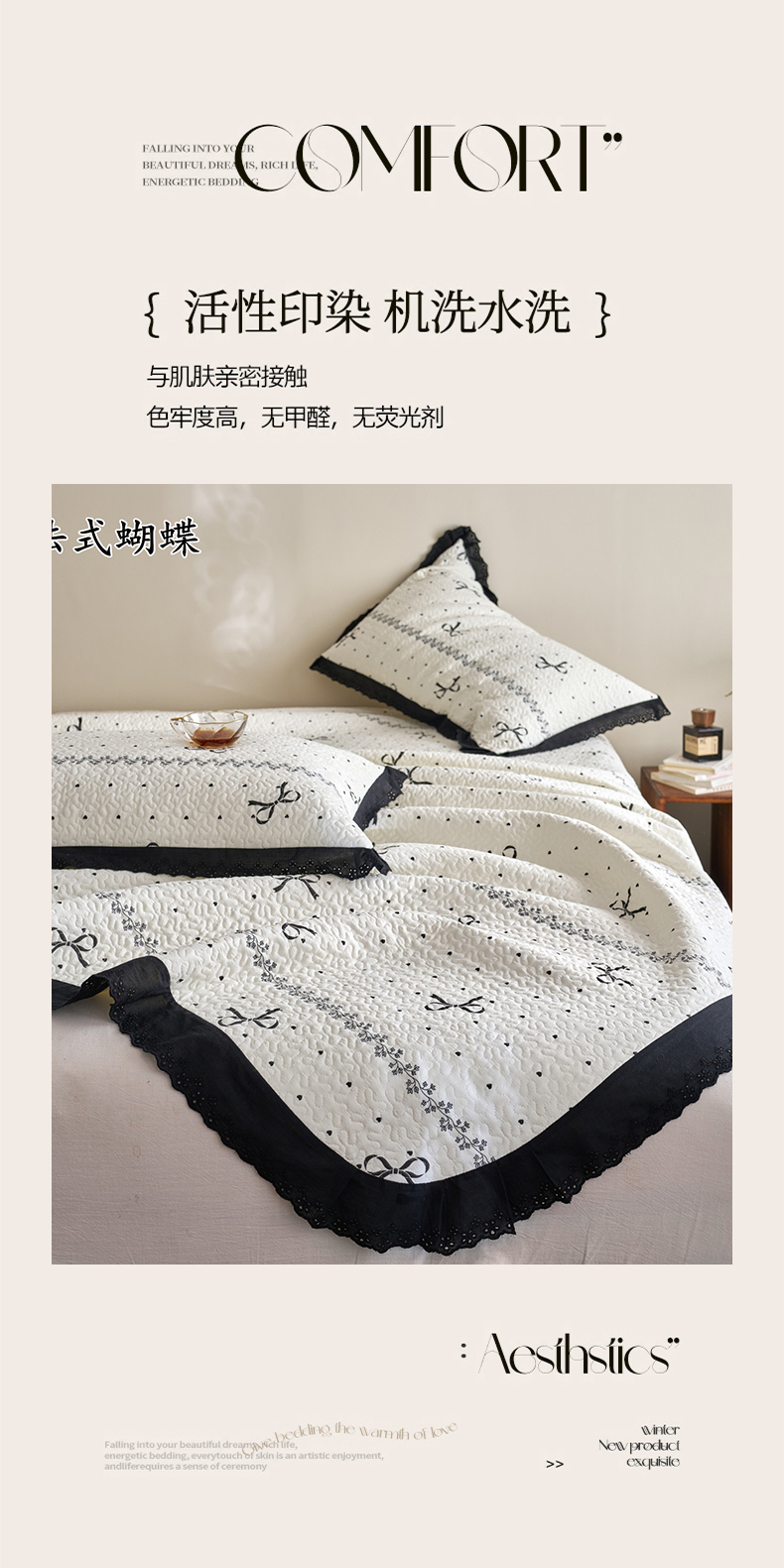 商品名称:漫仙阁家纺 2025新款热卖法式花边款加厚床盖床盖三件套 法式蝴蝶