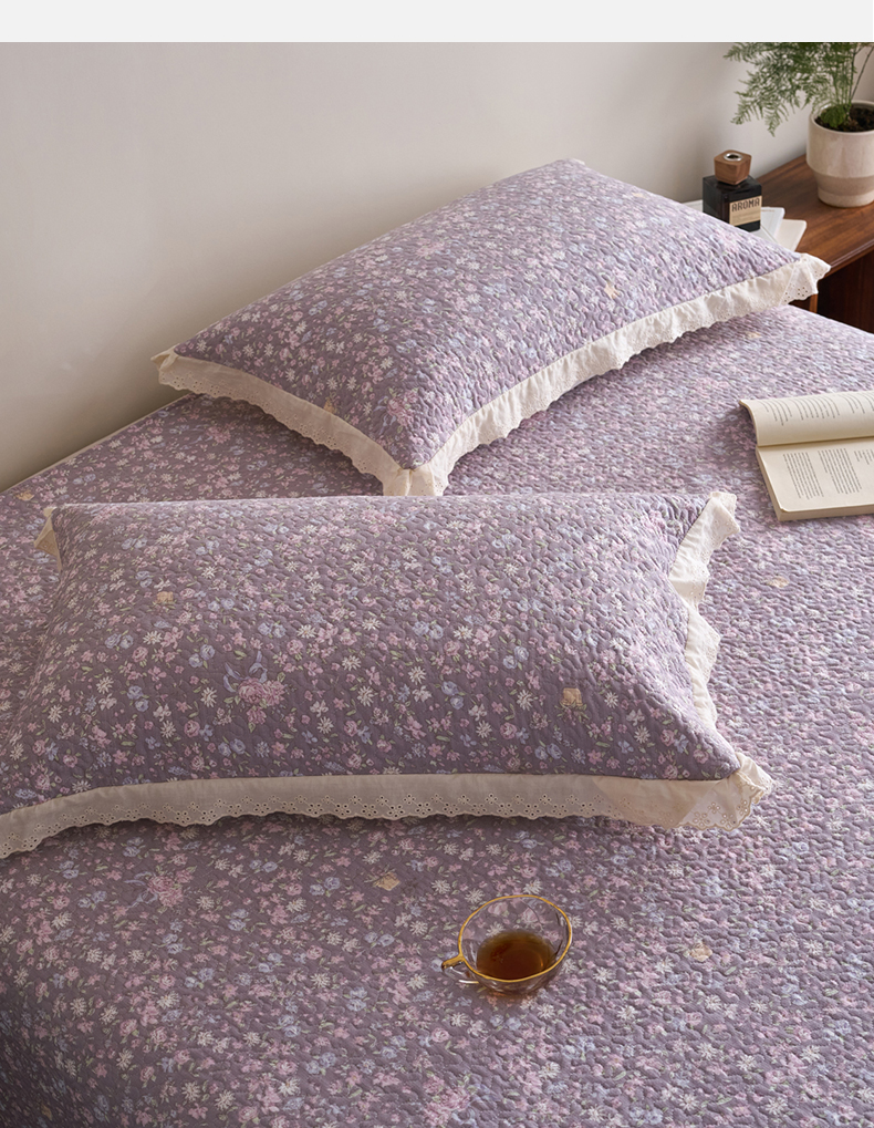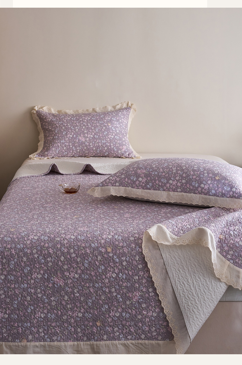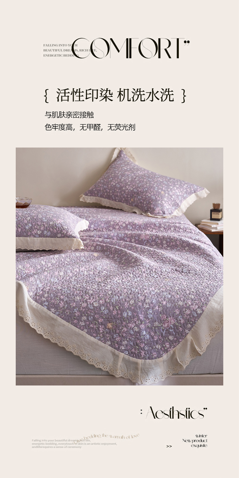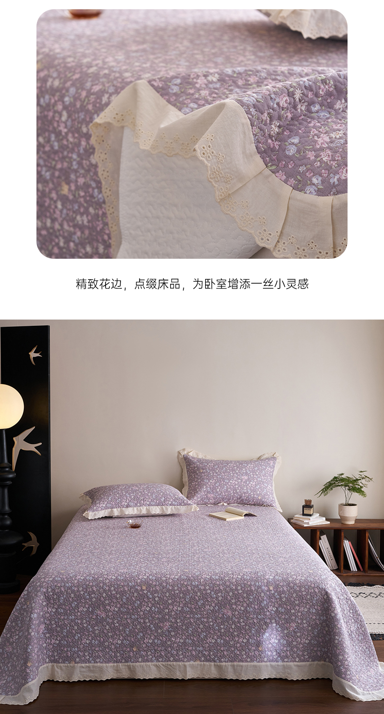 漫仙阁家纺 2025新款热卖法式花边款加厚床盖床盖三件套 紫藤花