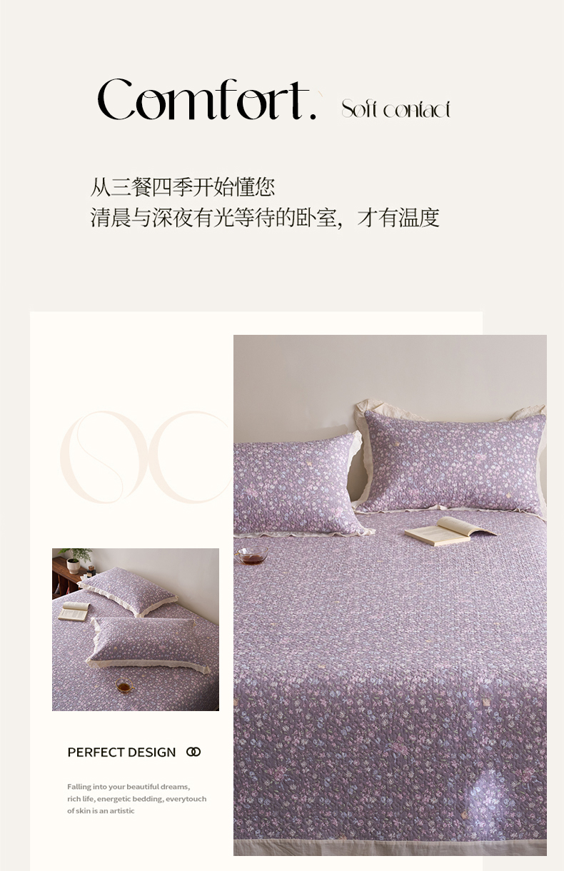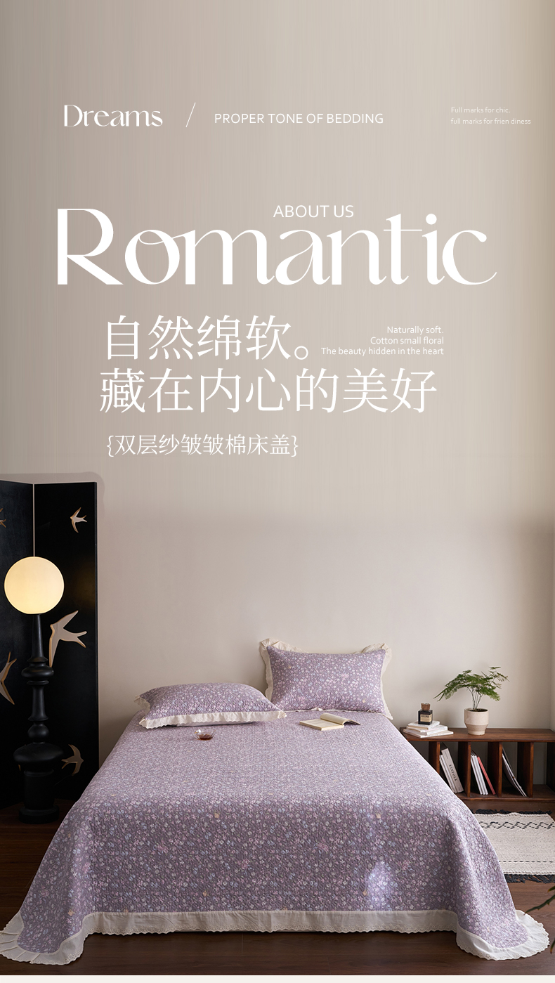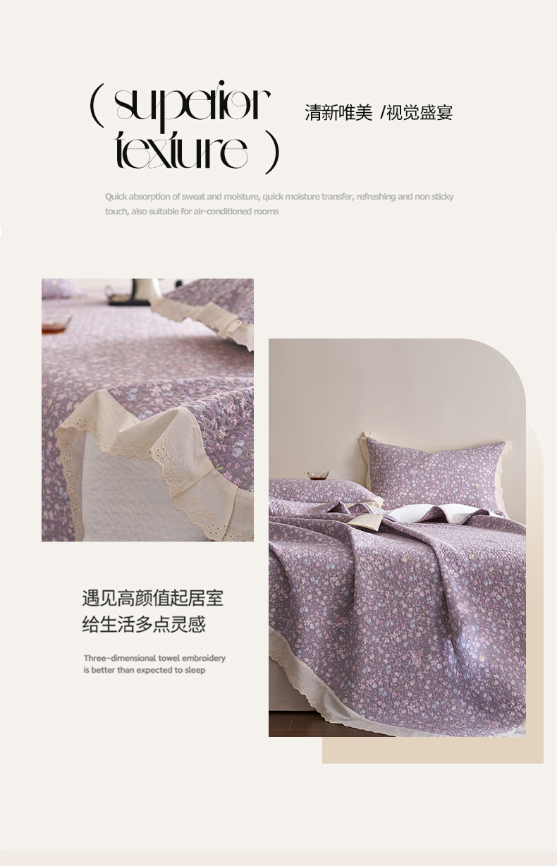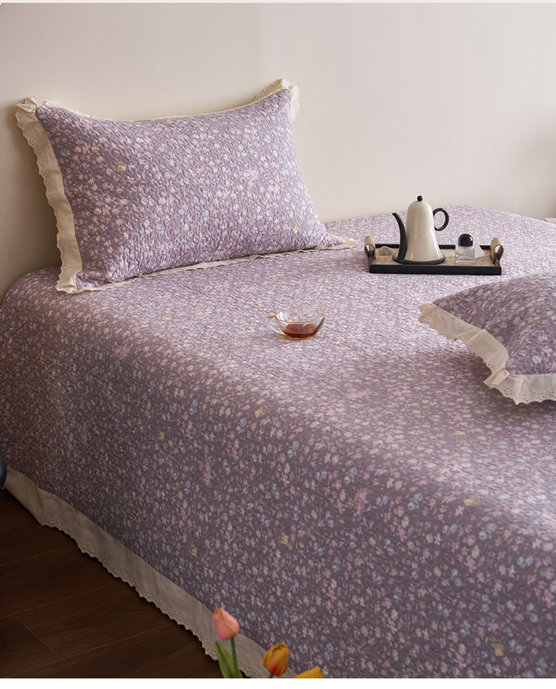 漫仙阁家纺 2025新款热卖法式花边款加厚床盖床盖三件套 紫藤花