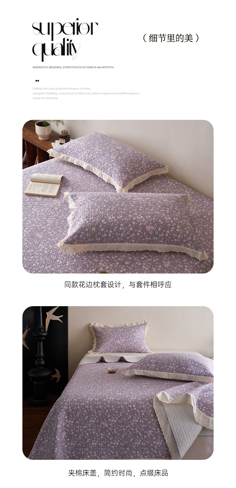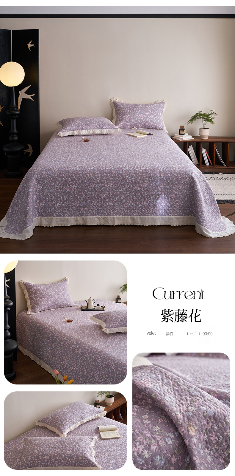 商品名称:漫仙阁家纺 2025新款热卖法式花边款加厚床盖床盖三件套 紫藤花