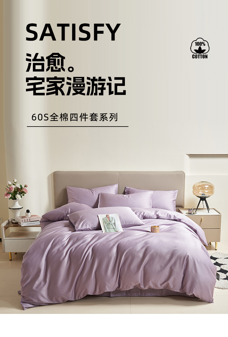 当前位置: 91家纺网 > 商品网购 > 床品套件 > 四件套 > 全棉普通四件套 > 暖芯家纺 2025新款60S黑标全棉四件套 木槿紫