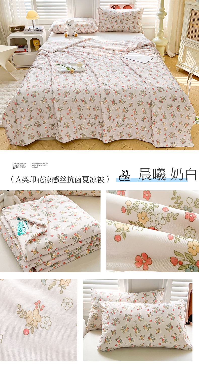 好梦来家纺(原锦茂家纺) 2025新款印花凉感丝抗菌夏被 晨曦 奶白