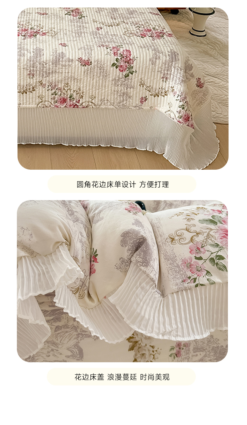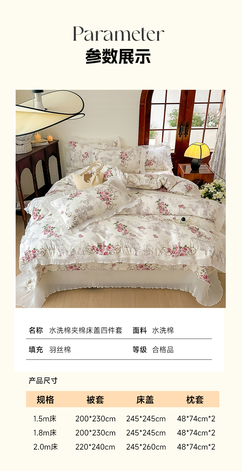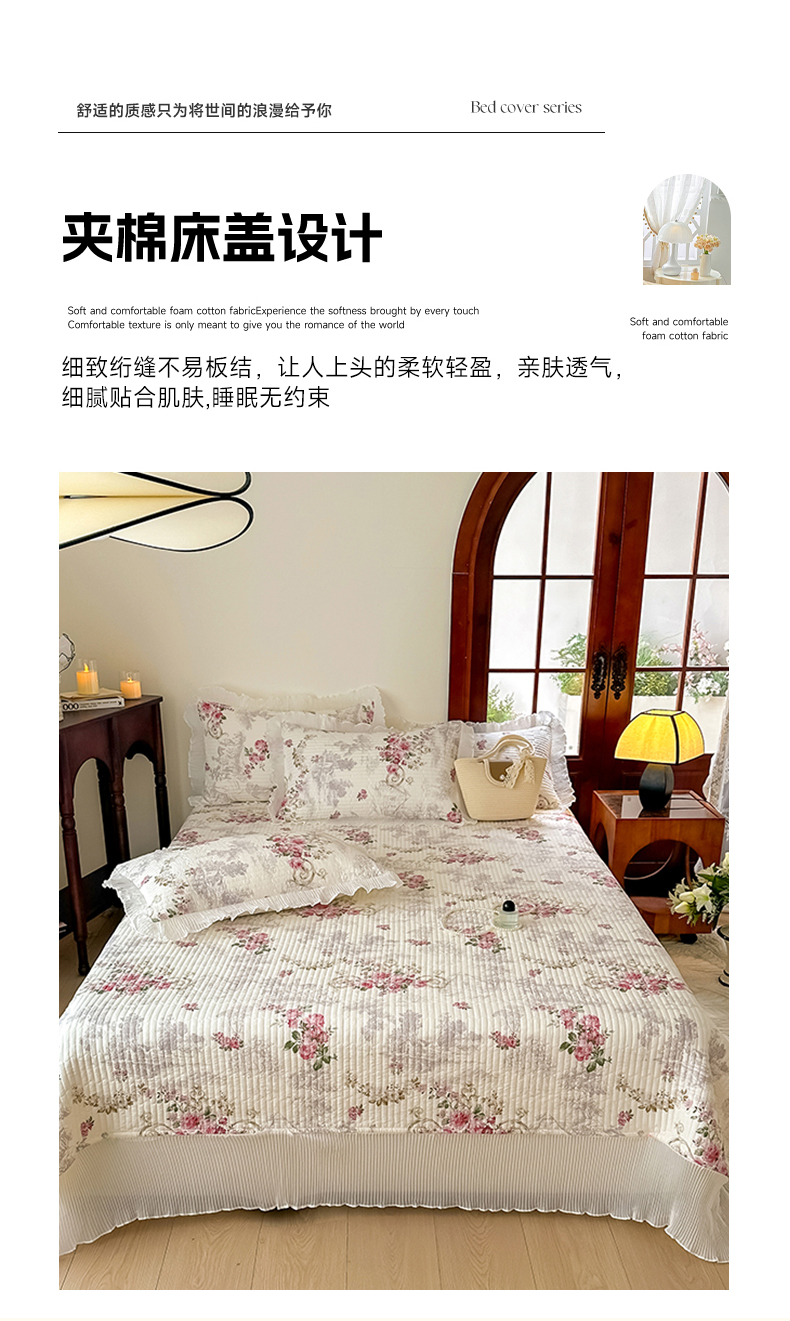 商品名称:(总)赫本家纺 2025新款水洗棉花边款夹棉床盖三件套四件套