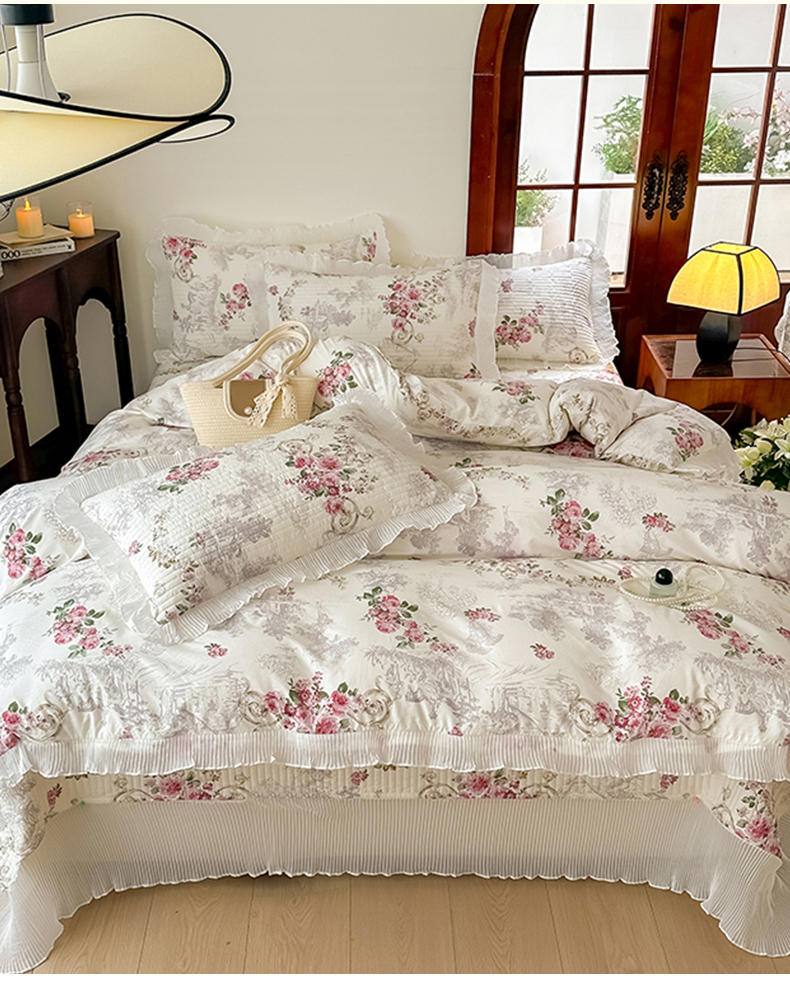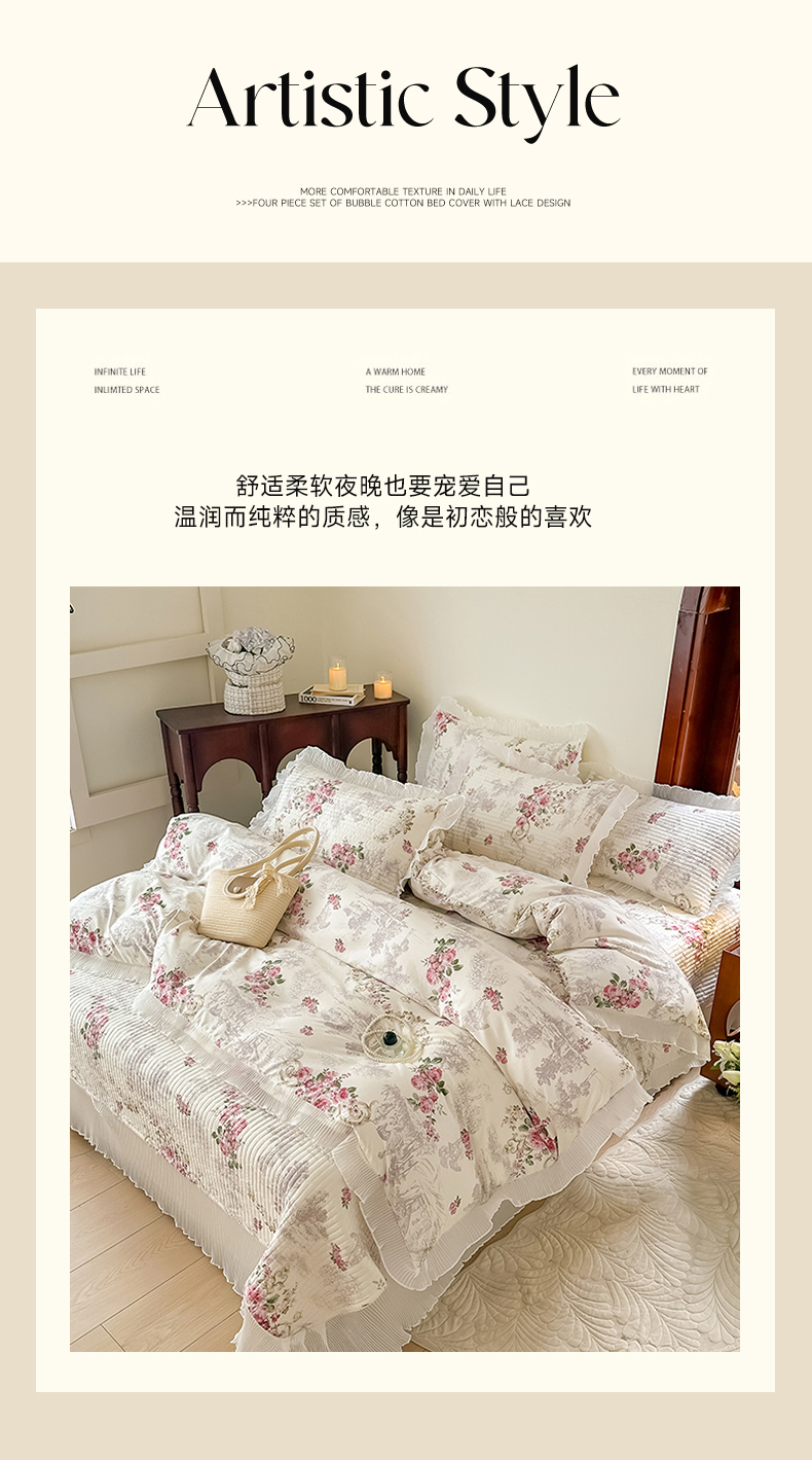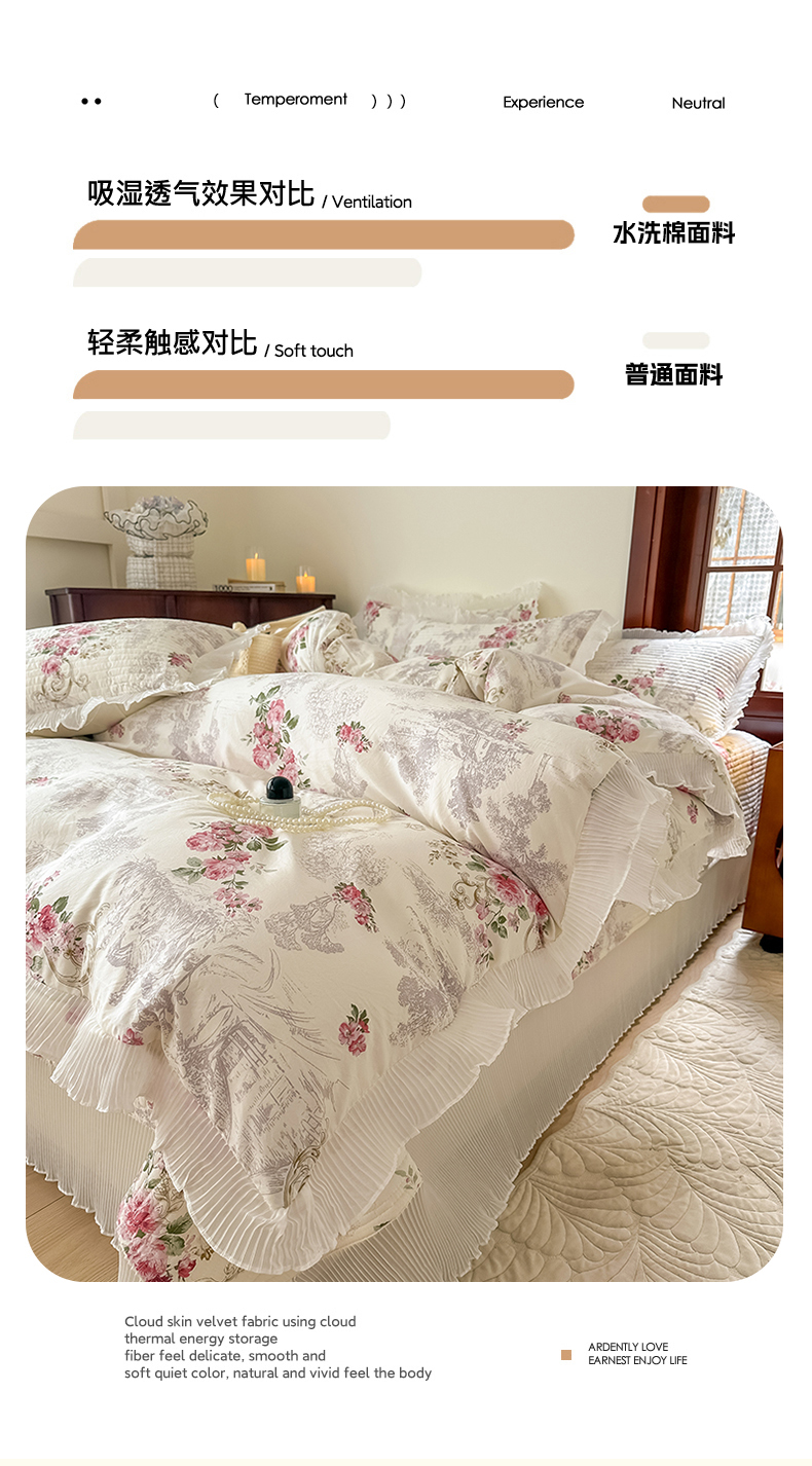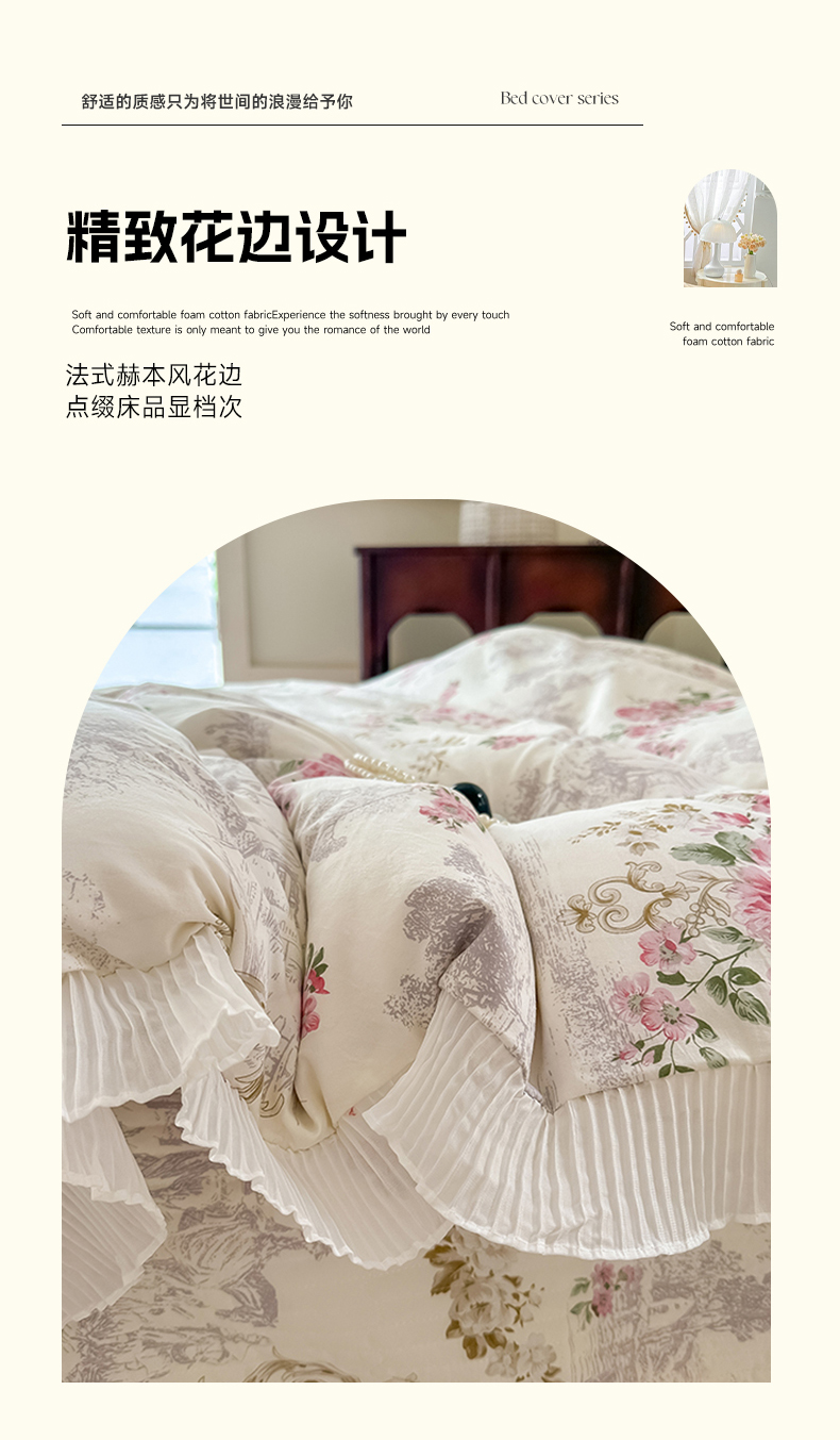 商品名称:(总)赫本家纺 2025新款水洗棉花边款夹棉床盖三件套四件套