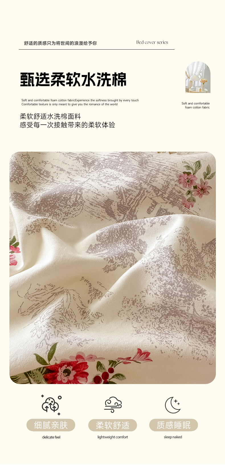 (总)赫本家纺 2025新款水洗棉花边款夹棉床盖三件套四件套