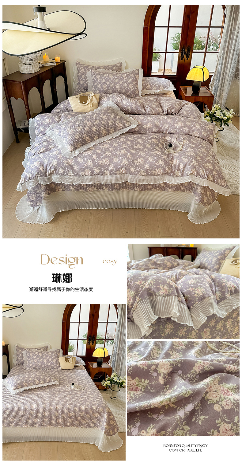 商品名称:赫本家纺 2025新款水洗棉花边款夹棉床盖三件套四件套 琳娜
