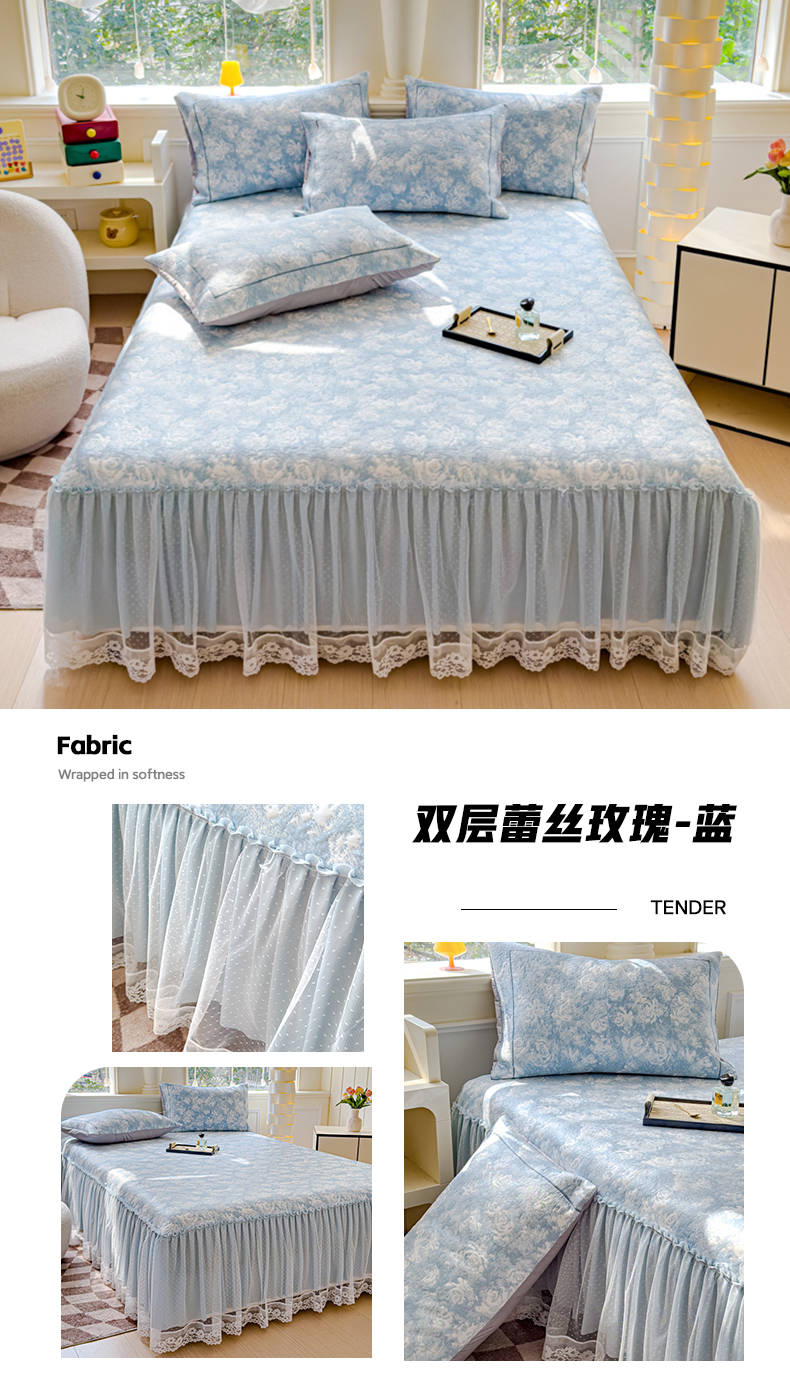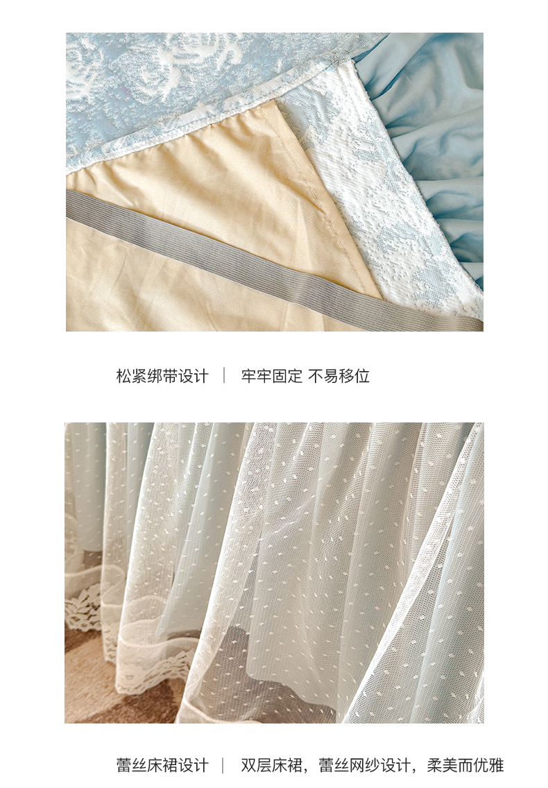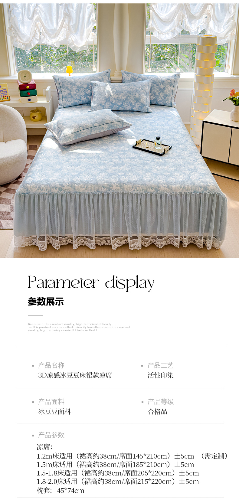 当前位置: 91家纺网 > 商品网购 > 床上用品 > 凉席 > 其他凉席 > 伊而梦蚊帐 2025新款A类3D立体冰豆豆双层蕾丝玫瑰床裙款凉席 双层蕾丝玫瑰-蓝三件套