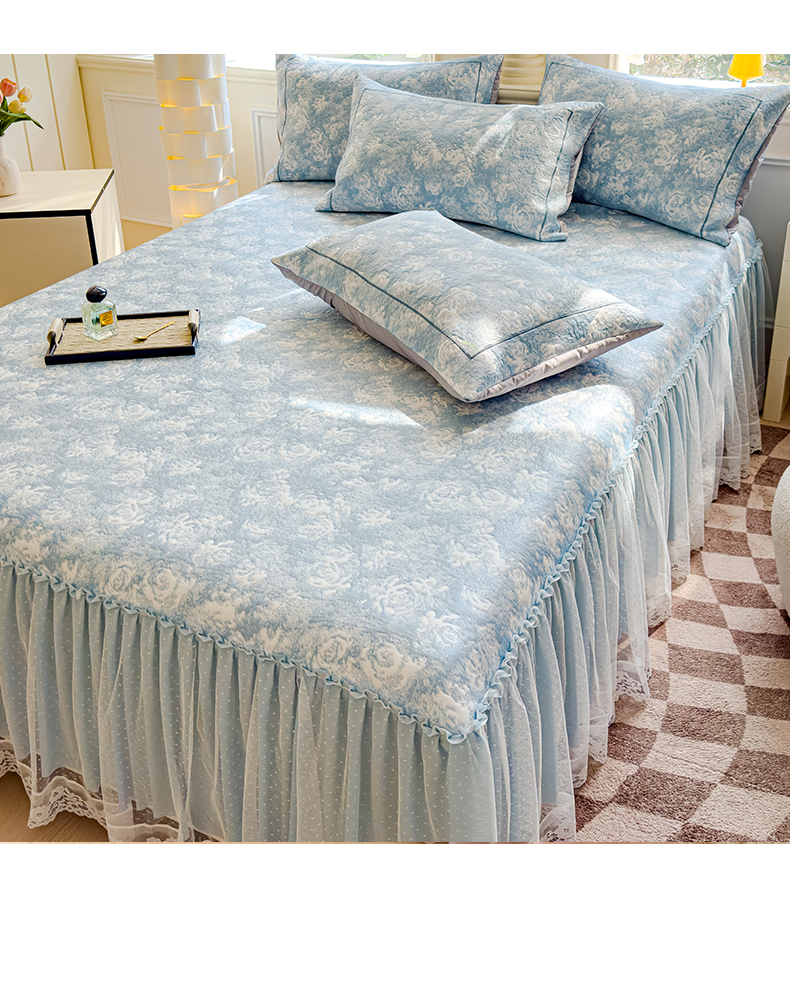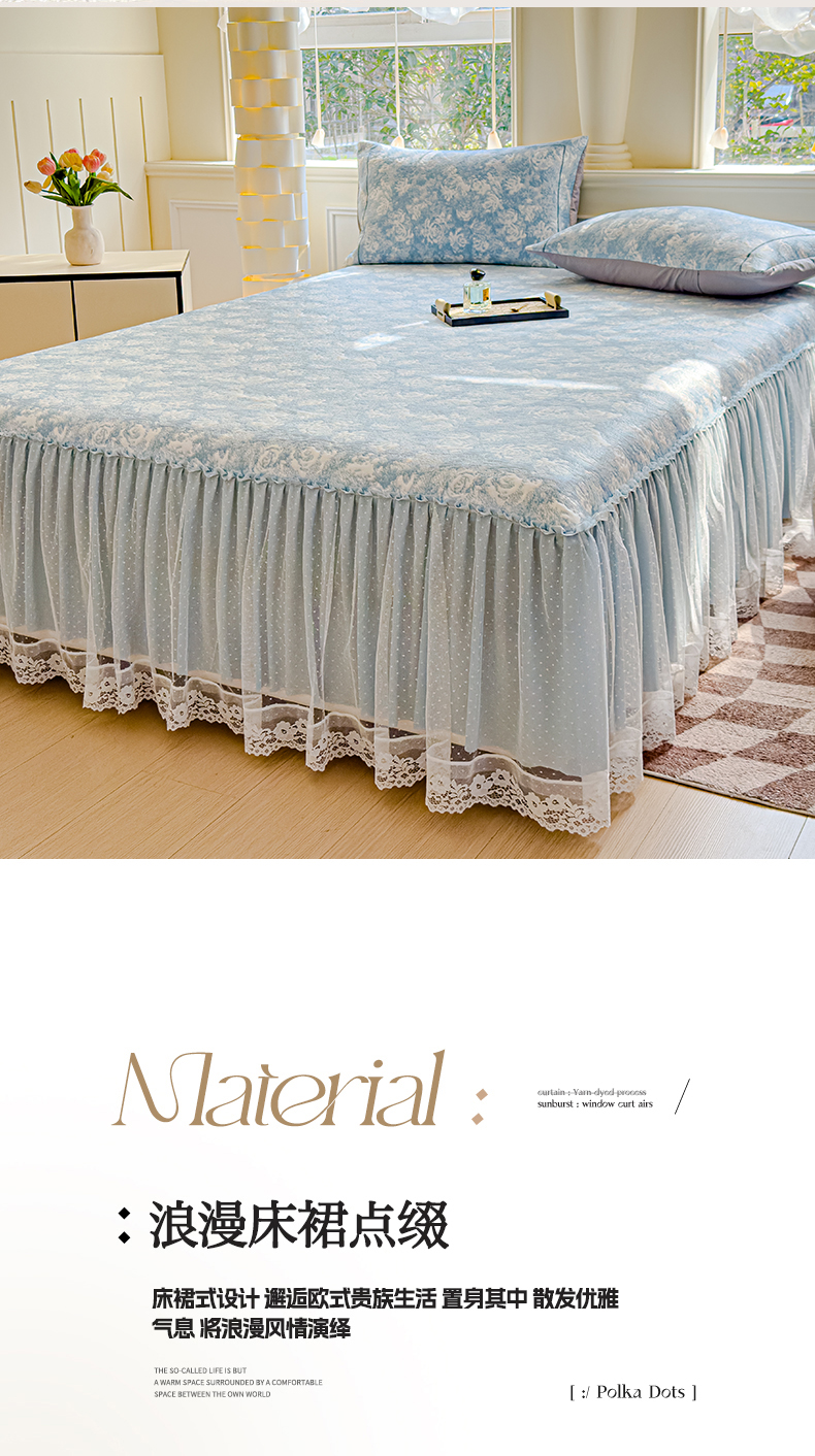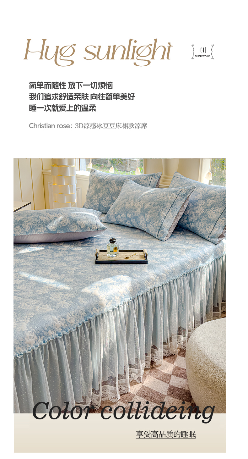 当前位置: 91家纺网 > 商品网购 > 床上用品 > 凉席 > 其他凉席 > 伊而梦蚊帐 2025新款A类3D立体冰豆豆双层蕾丝玫瑰床裙款凉席 双层蕾丝玫瑰-蓝三件套