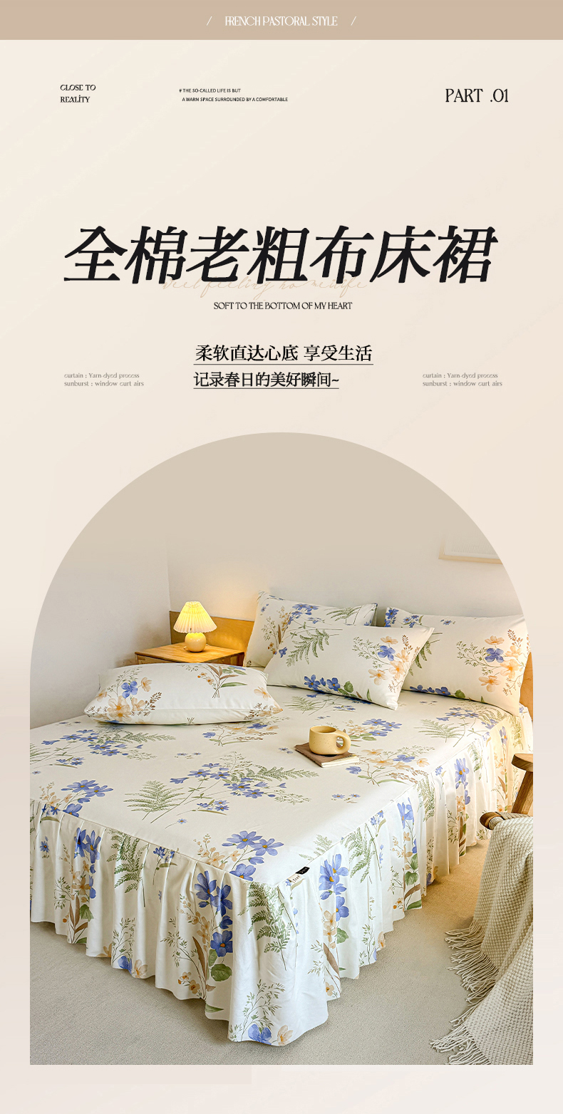 商品名称:(总)布柔 2025新款100%全棉老粗布绣花印花凉席单品纯棉床裙