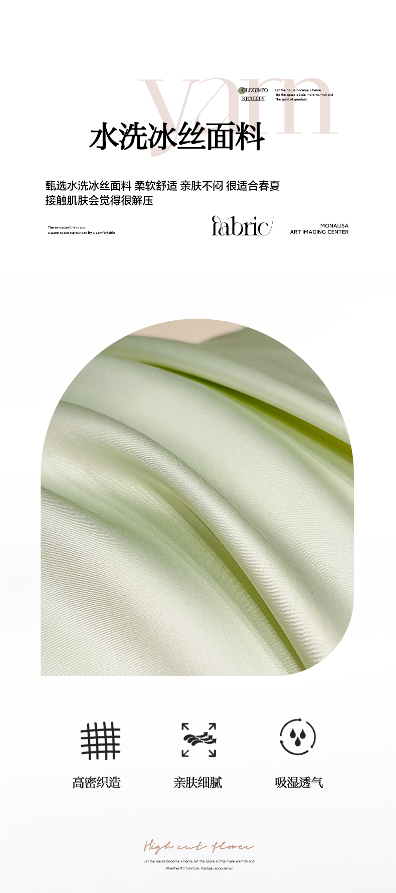 • 91家纺网 家纺一手货源 找家纺 2025新款水洗冰丝夏被四件套甜梦系列 甜梦-绿米