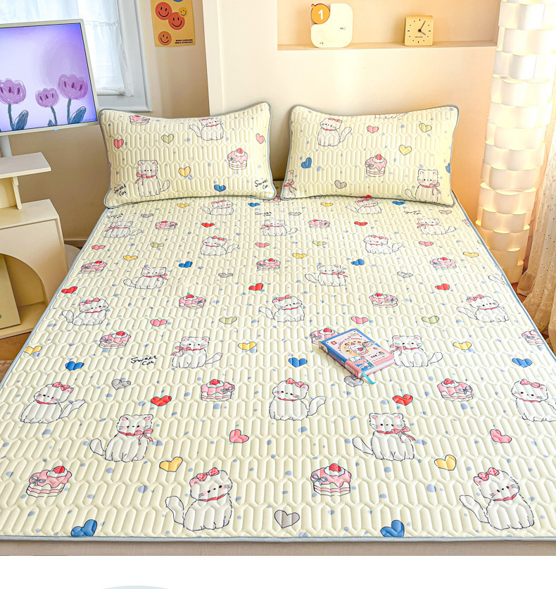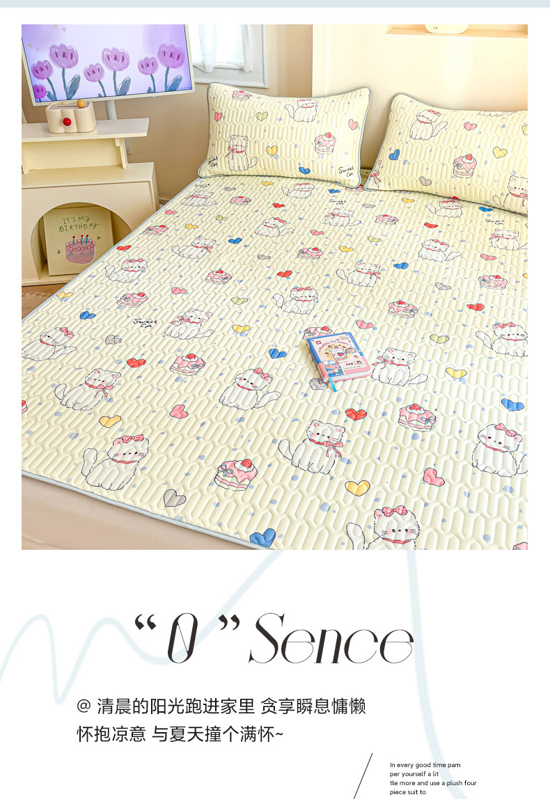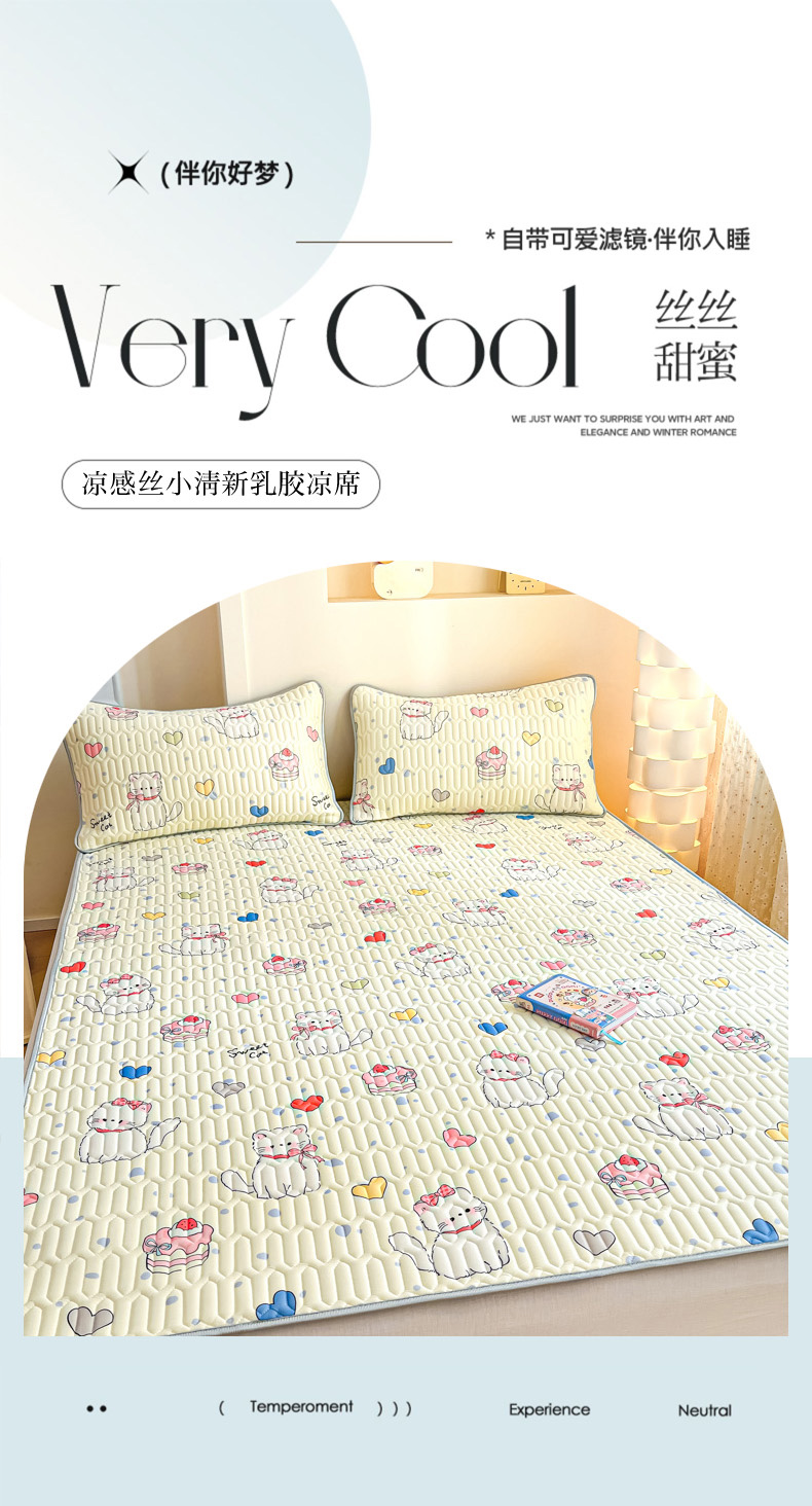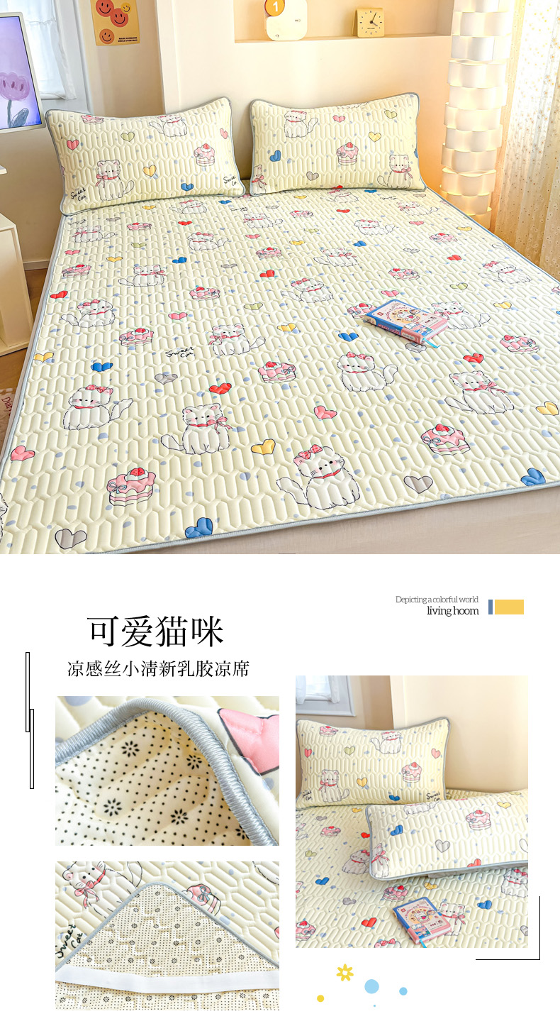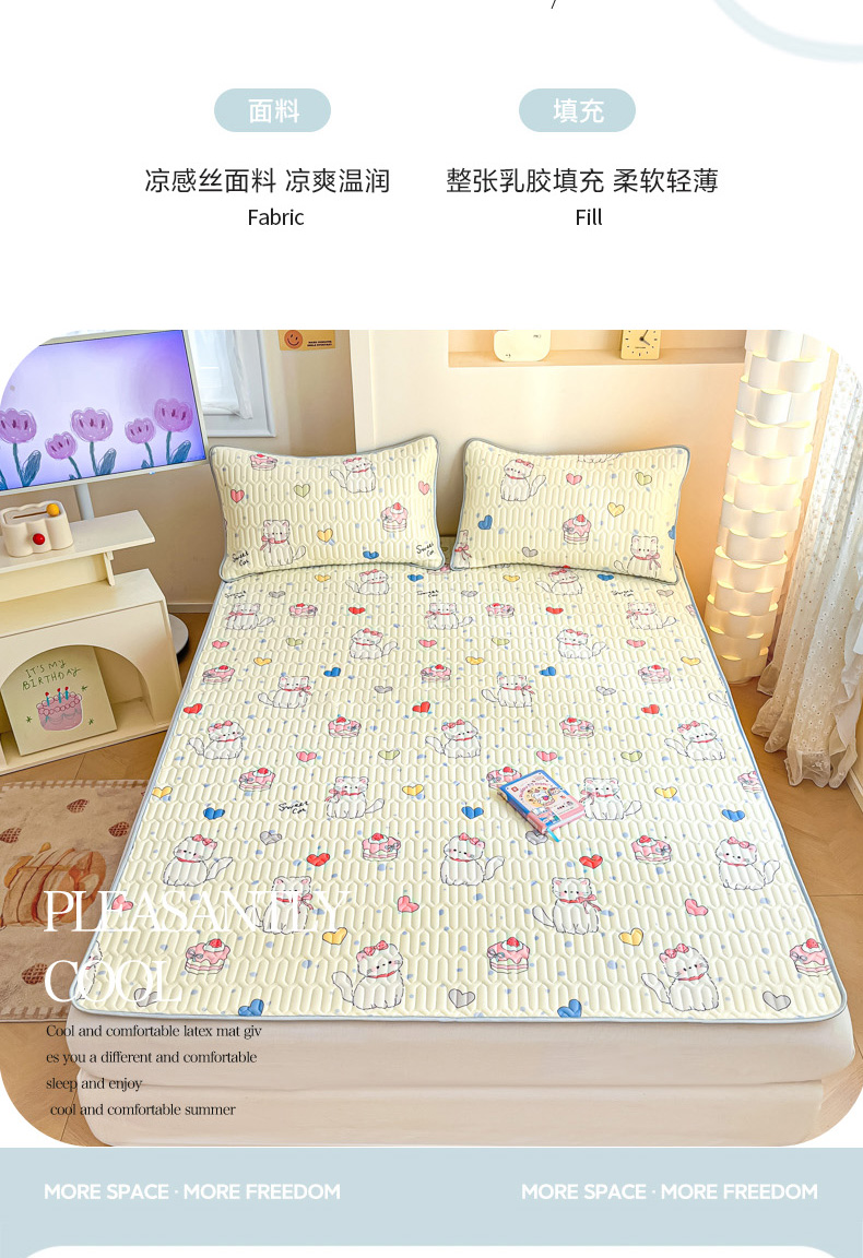 柒月家居 2025新款小清新乳胶凉席 可爱猫咪
