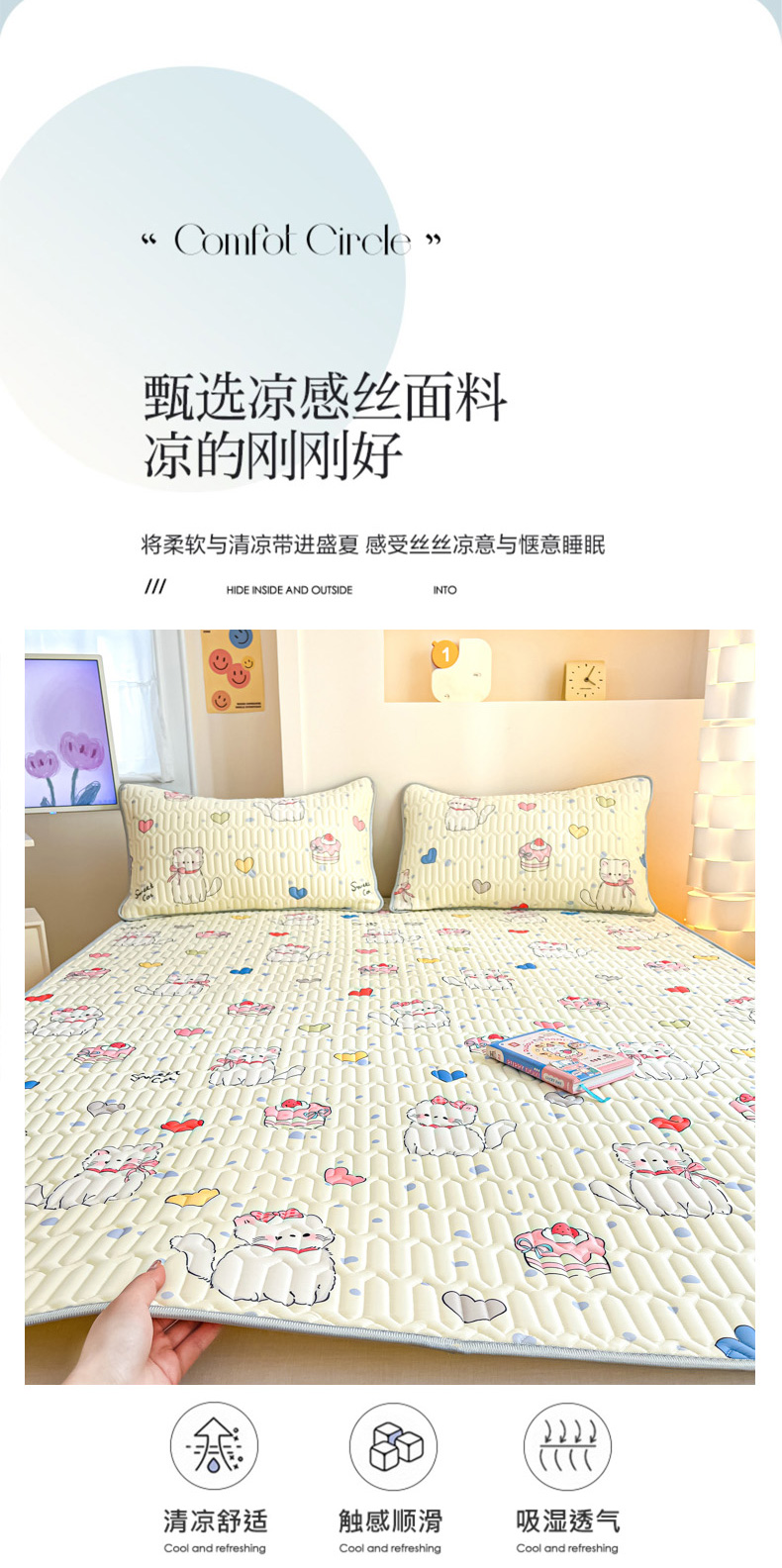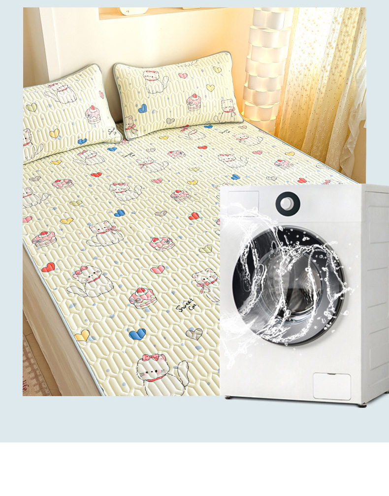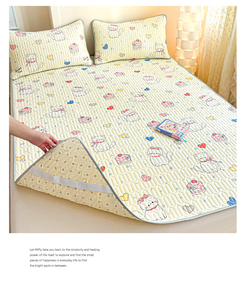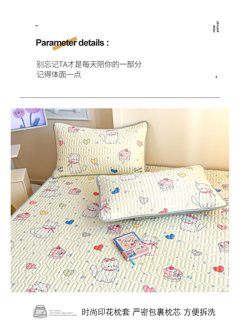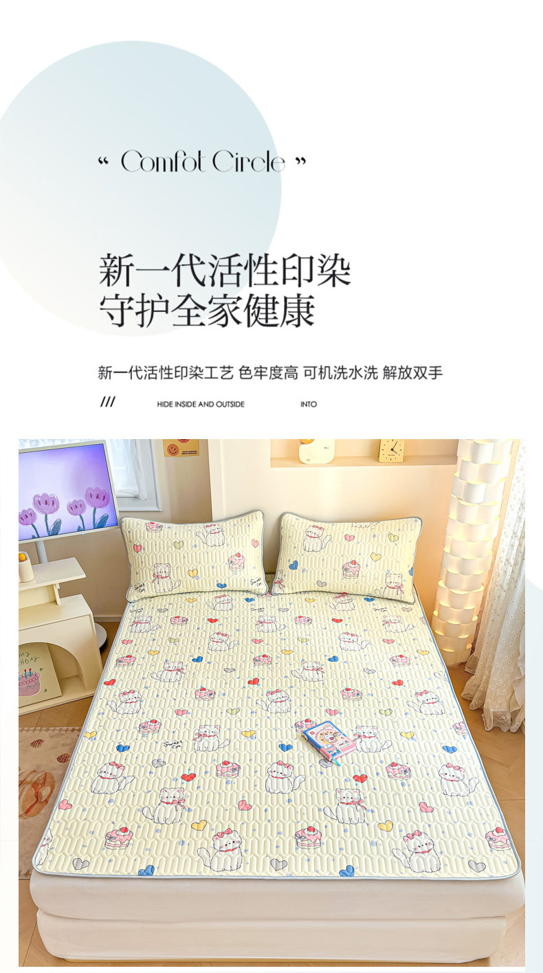 柒月家居 2025新款小清新乳胶凉席 可爱猫咪