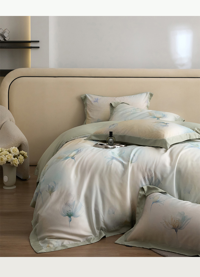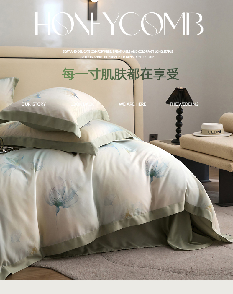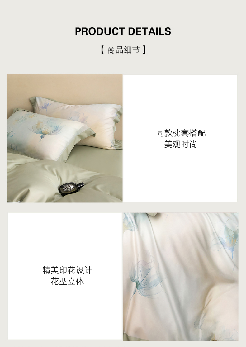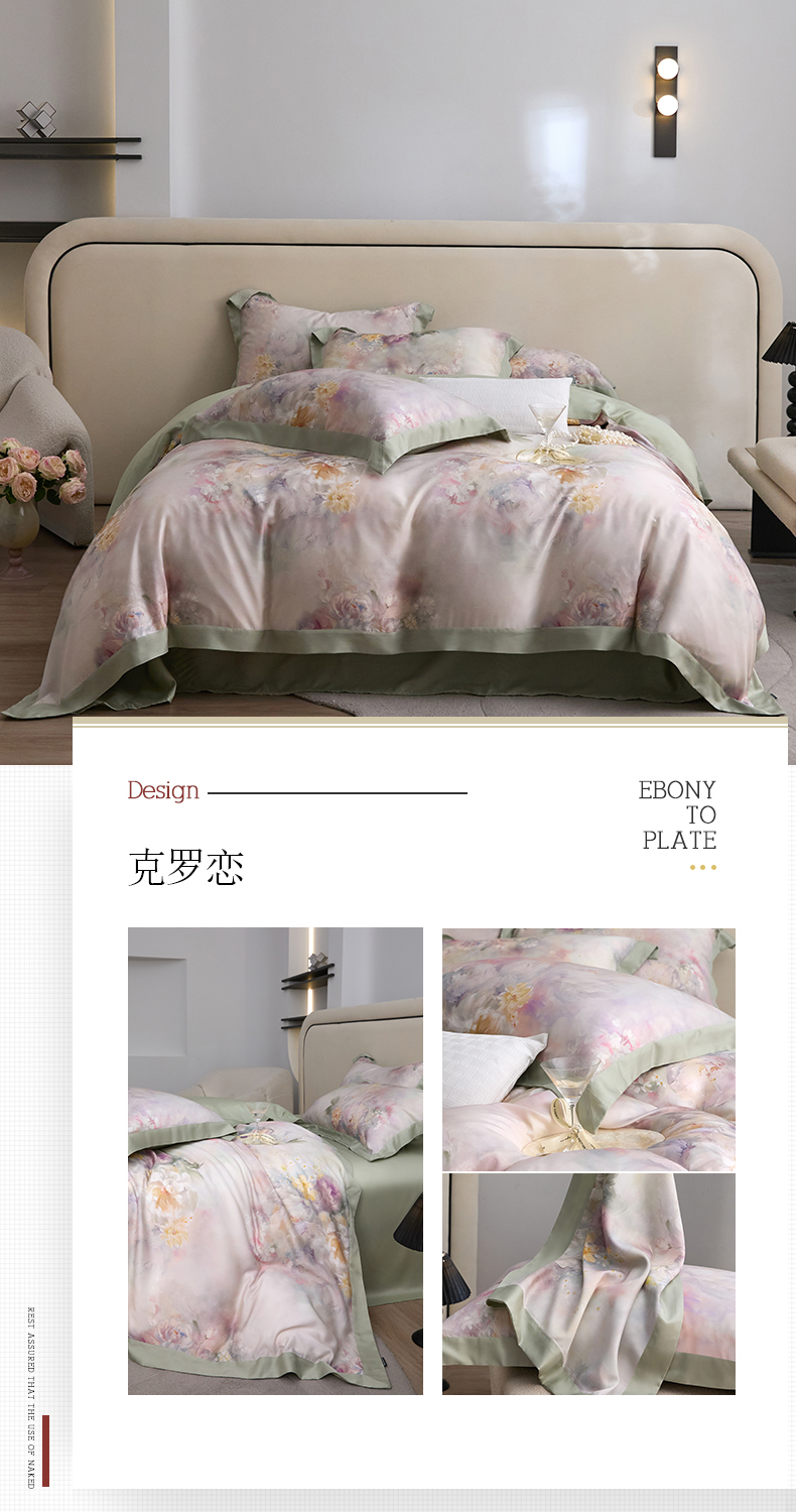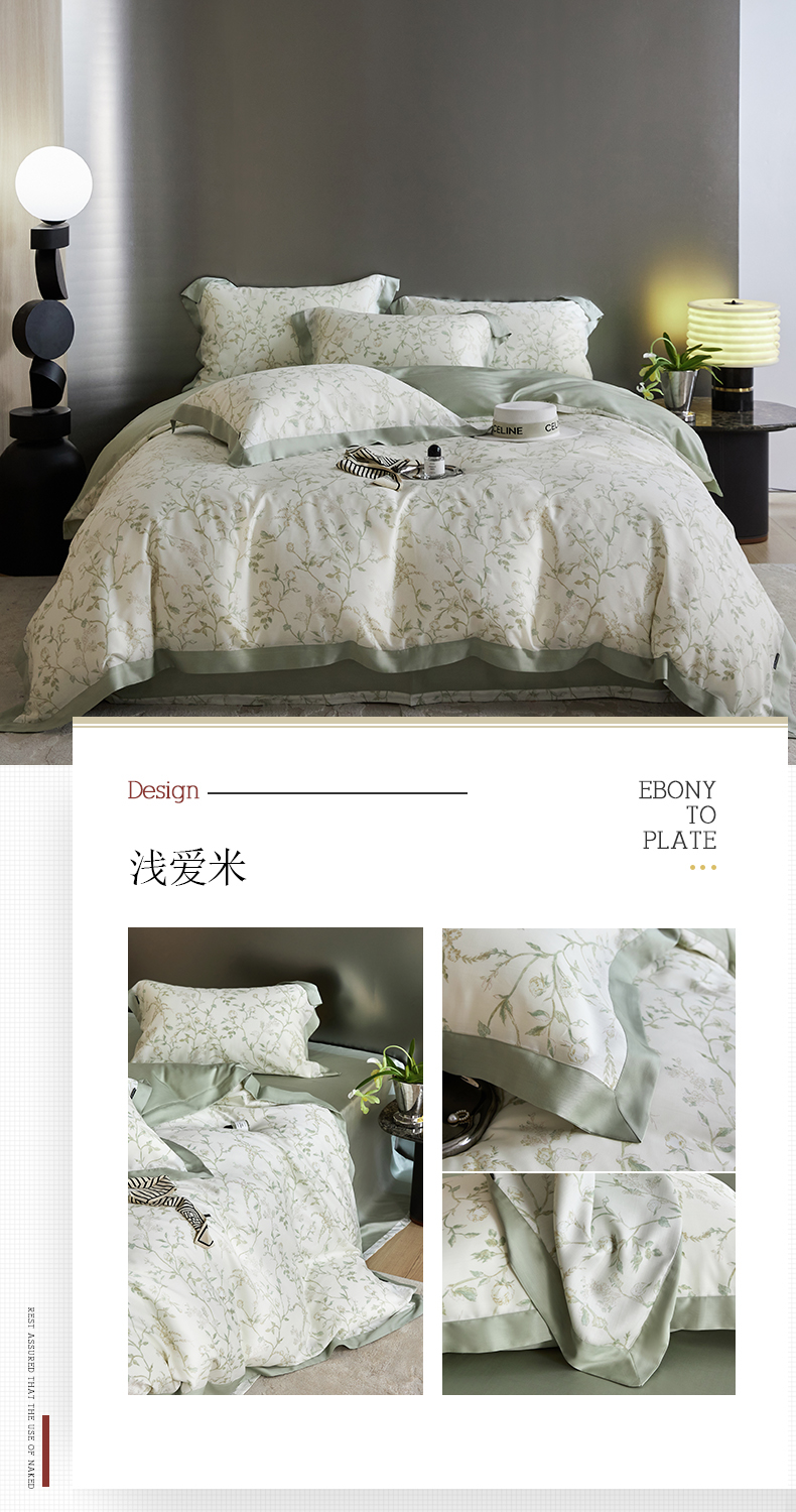 (总)薏思家纺 2025新款全棉100支数码印花生态磨毛轻奢款四件套-花边系列,橘子海,向云端,寻野-绿