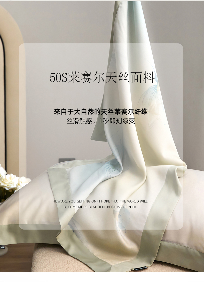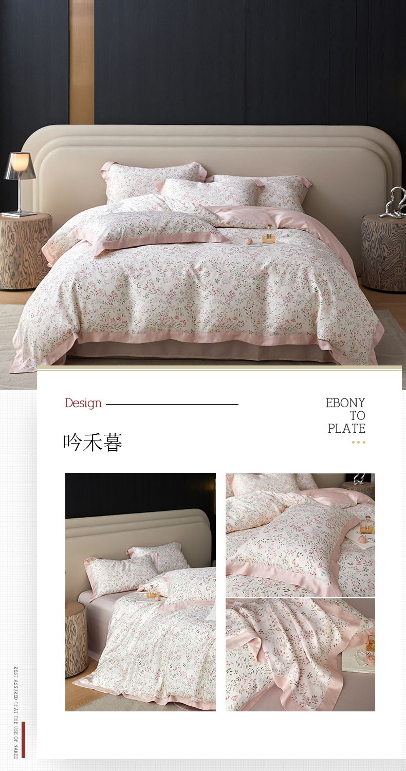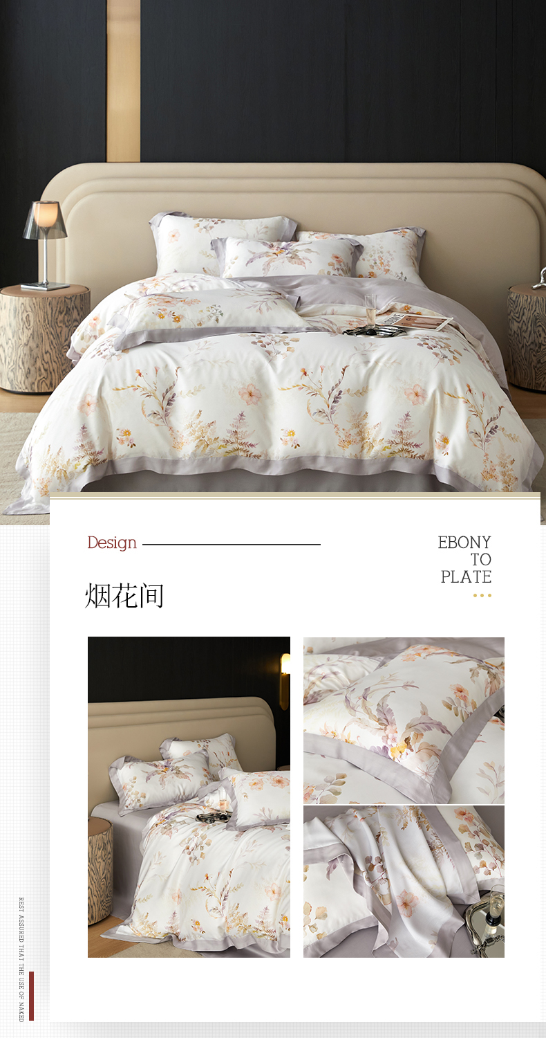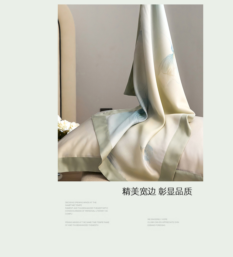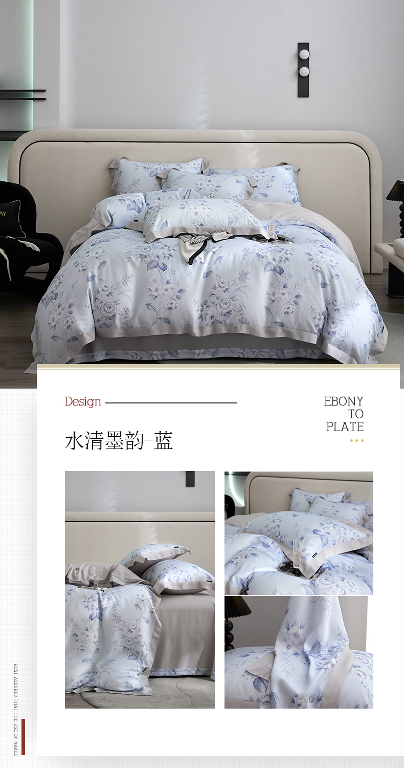 薏思家纺 2025新款50支莱赛尔天丝数码印花夏被+四件套(礼盒包装) 墨语