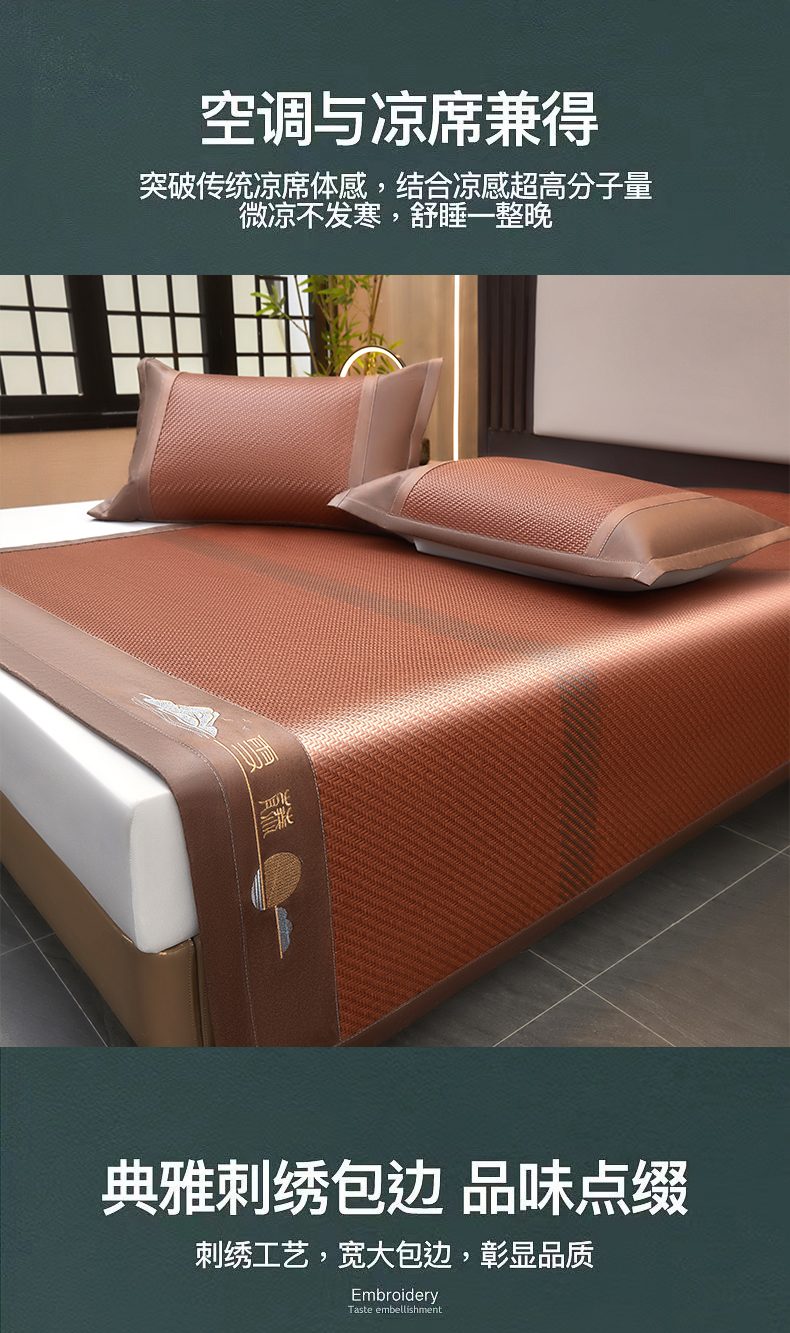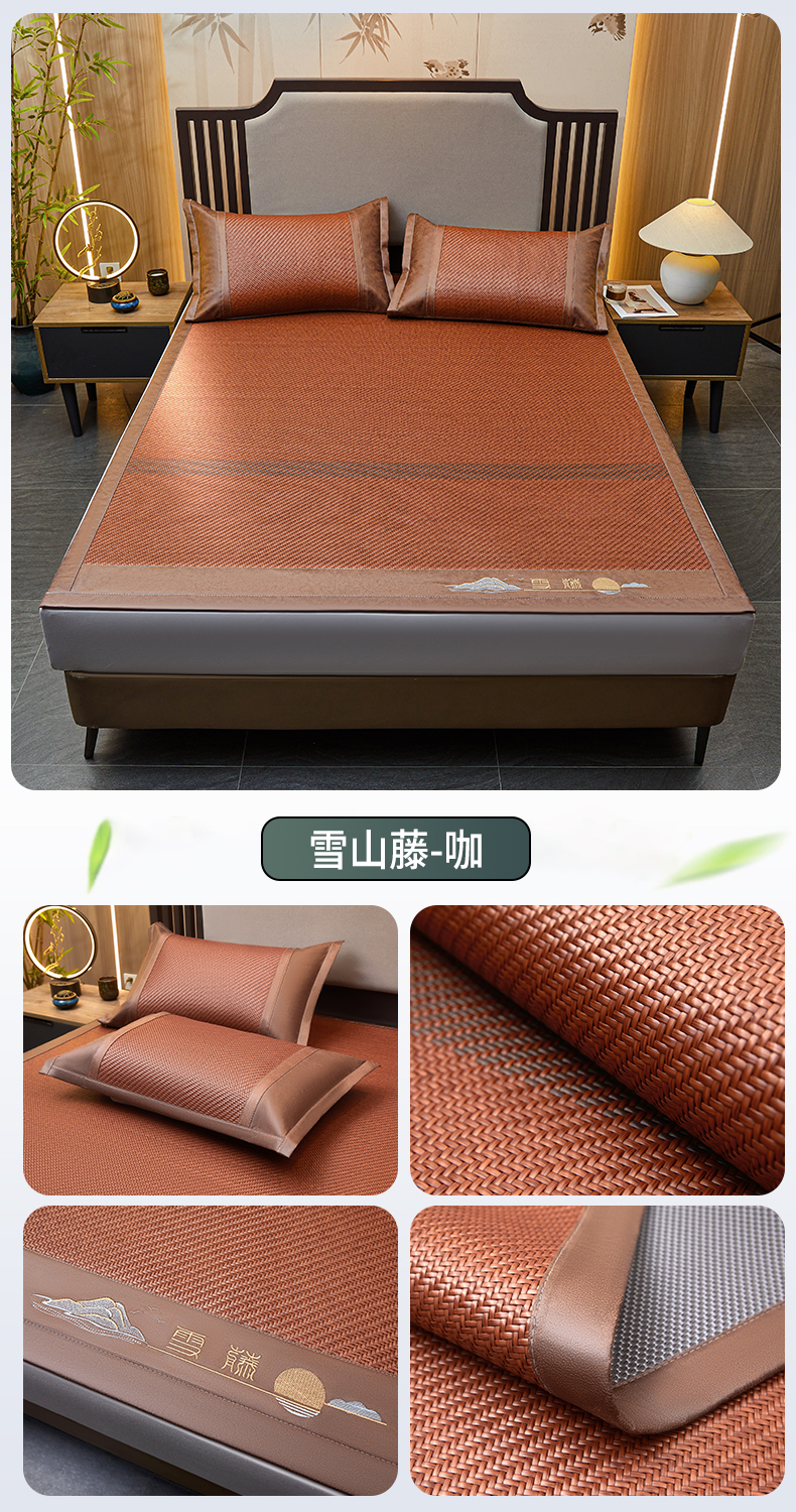 商品名称:航途席业 2025新款PE冷感霸王藤加厚刺绣款凉席 雪山藤-咖