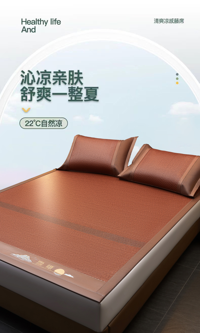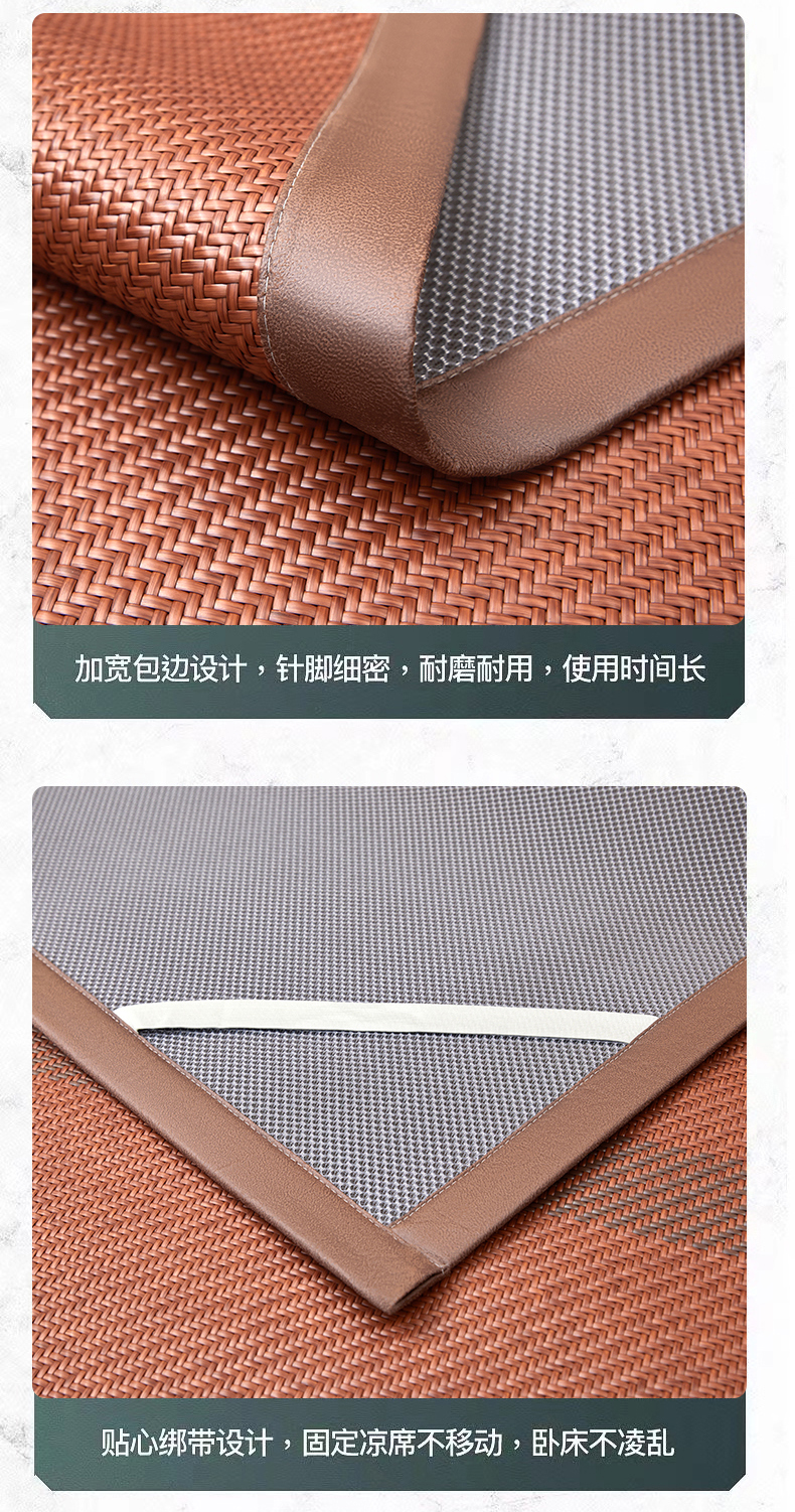 (总)航途席业 2025新款包边抗菌冰藤席冰藤凉席,冰藤格纹,冰藤繁华 ,冰藤简意