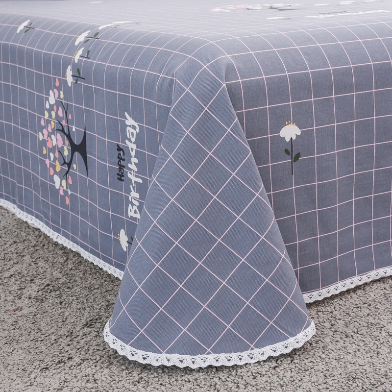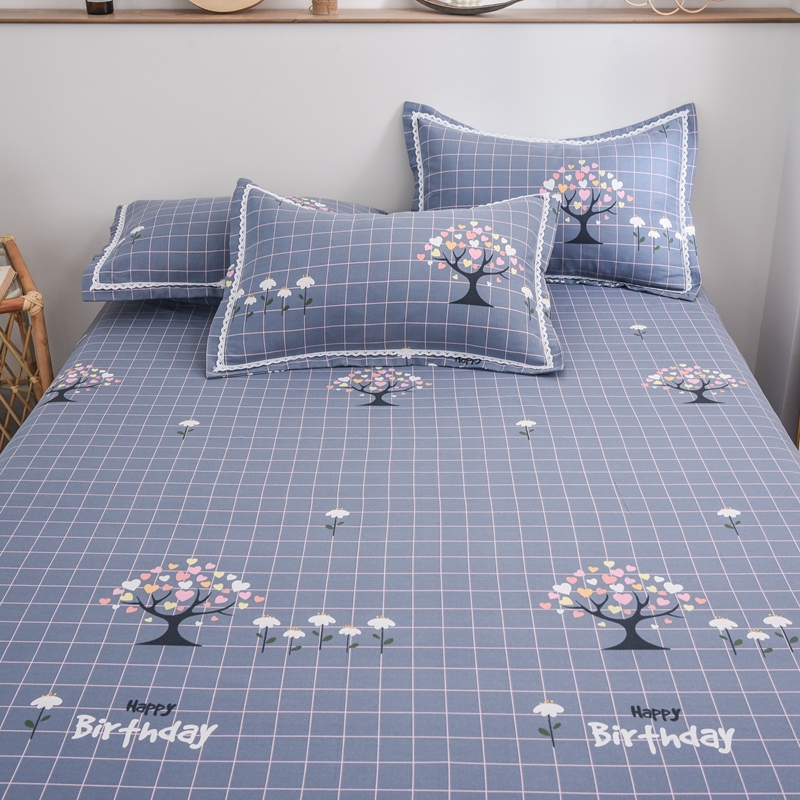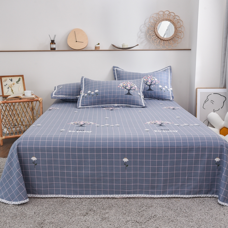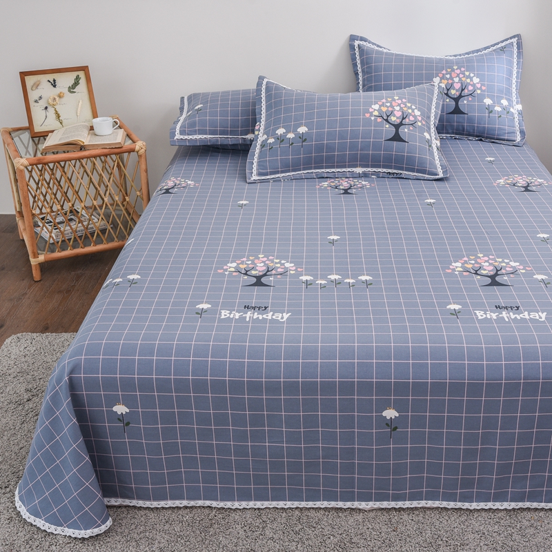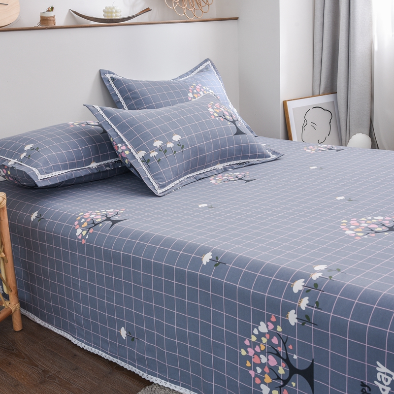 商品名称:仟网汇 2025全棉老粗布蕾丝花边三件套(无纺布手提包装) 发财树蓝灰
