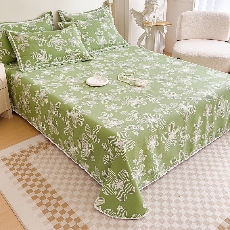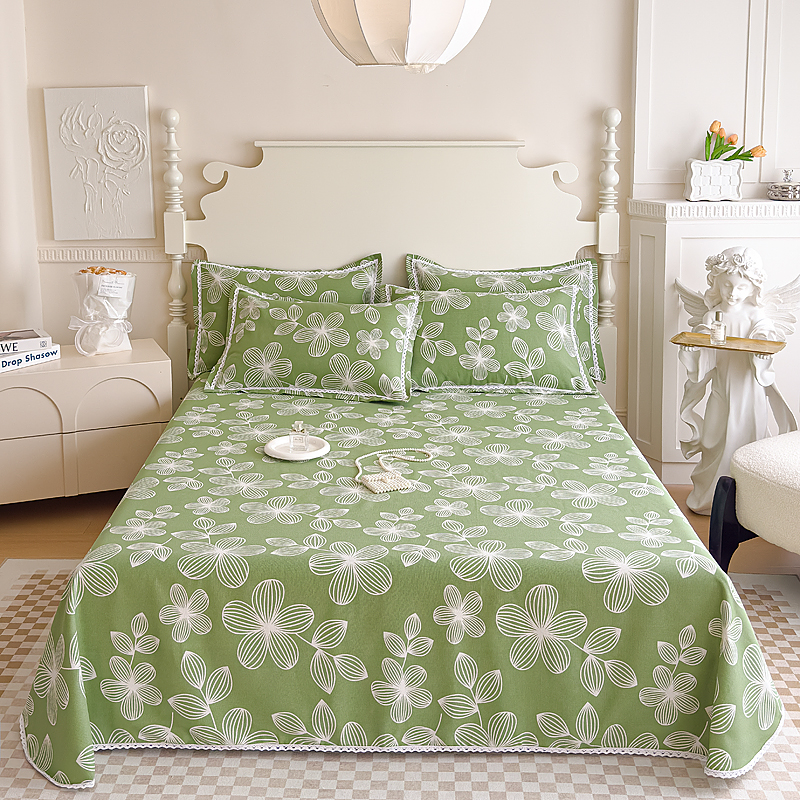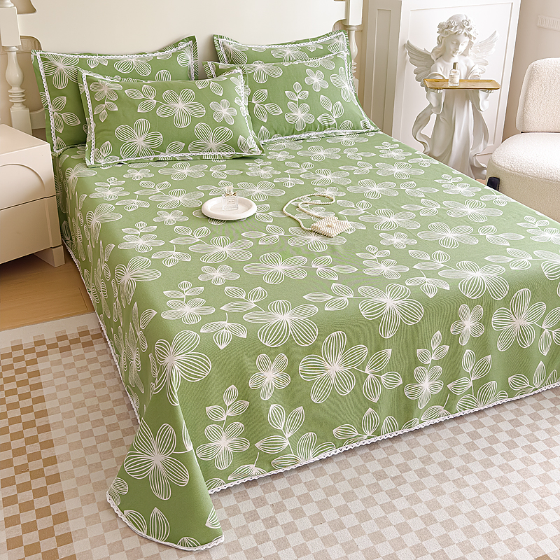 商品名称:仟网汇 2025全棉老粗布蕾丝花边三件套(无纺布手提包装) 绿色大花