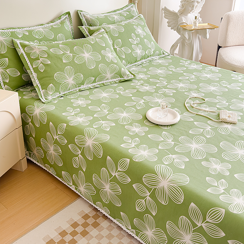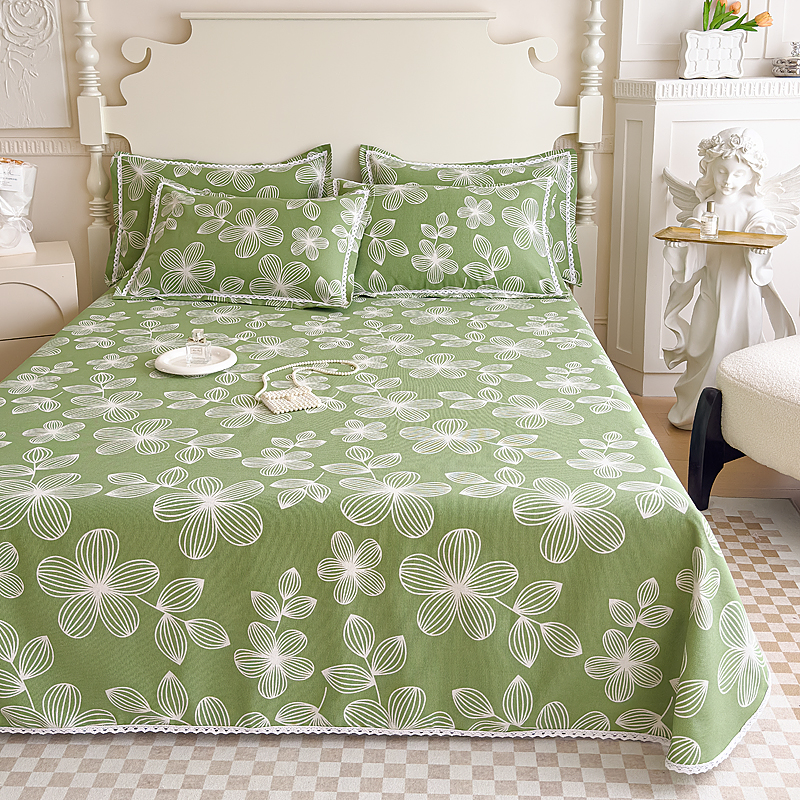 仟网汇 2025全棉老粗布蕾丝花边三件套(无纺布手提包装) 绿色大花