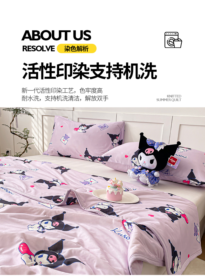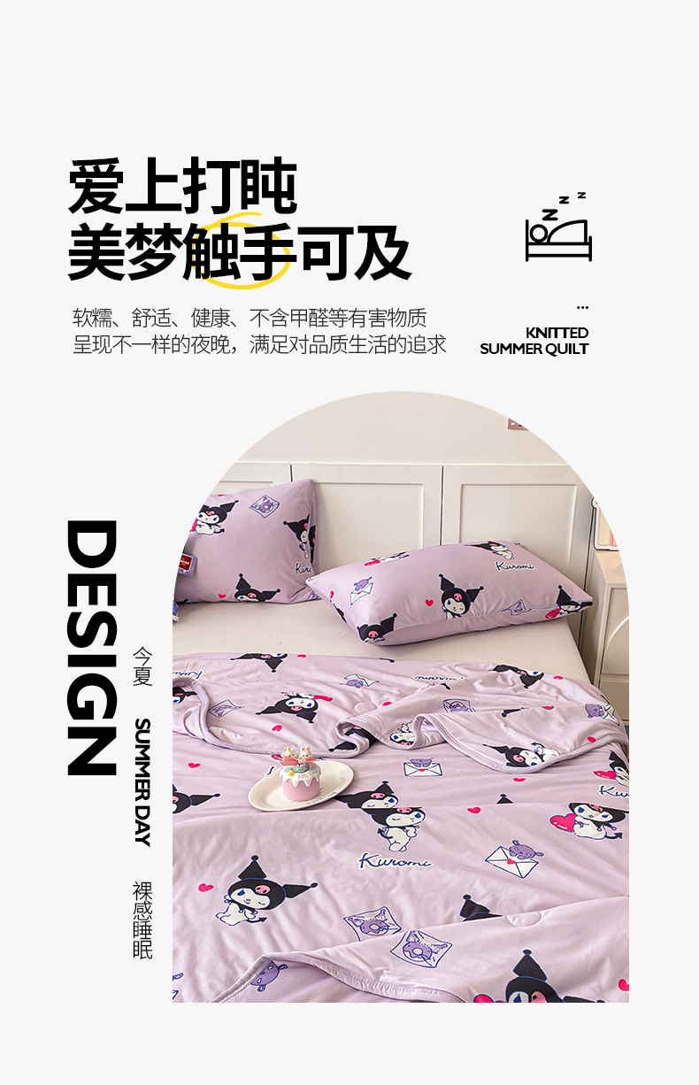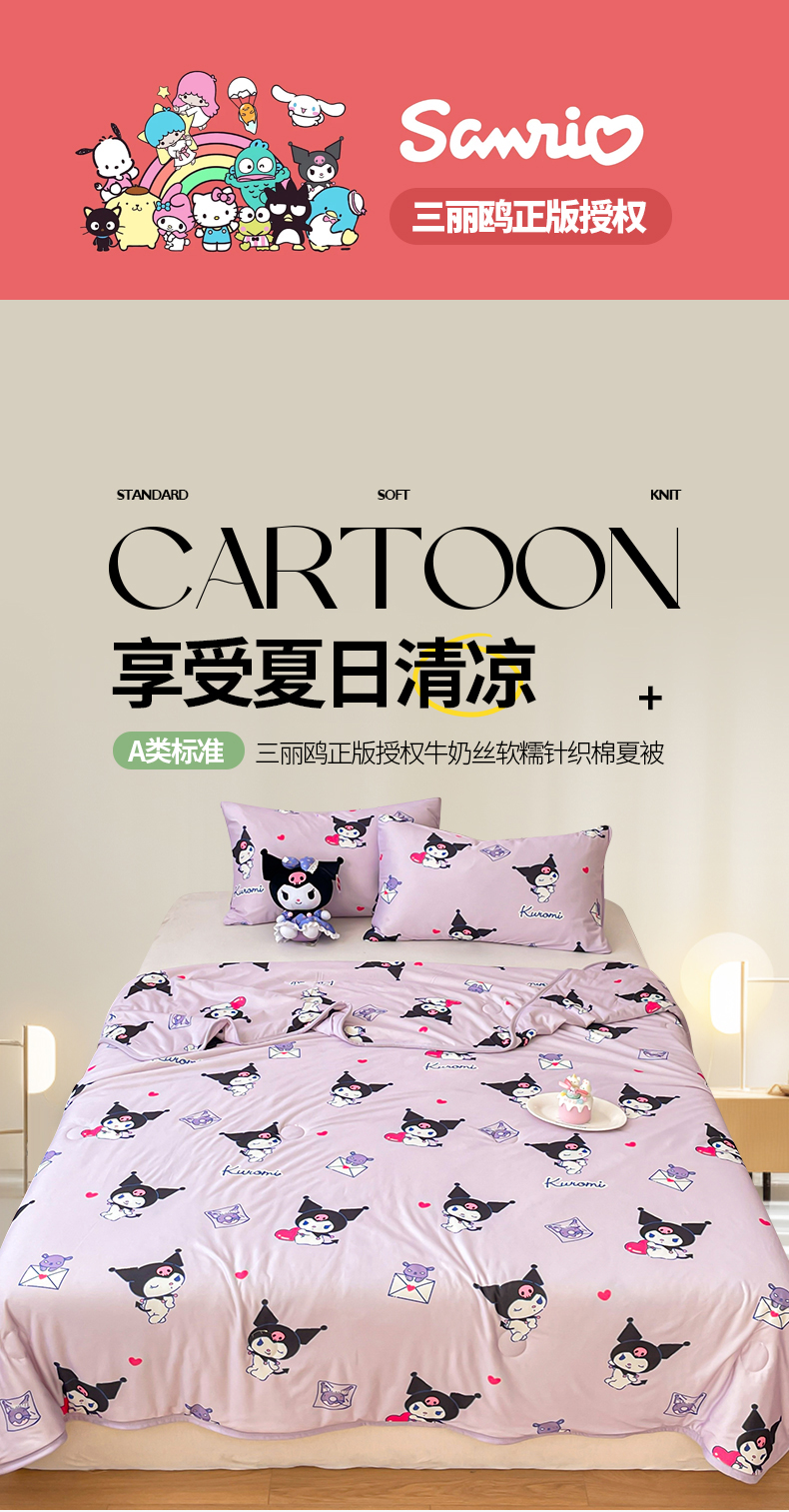 • 91家纺网 家纺一手货源 找家纺 桃子家居 2025新款A类三丽鸥正版授权高品质牛奶丝软糯针织棉大豆夏被系列 针织棉三丽鸥-紫色梦幻库洛米