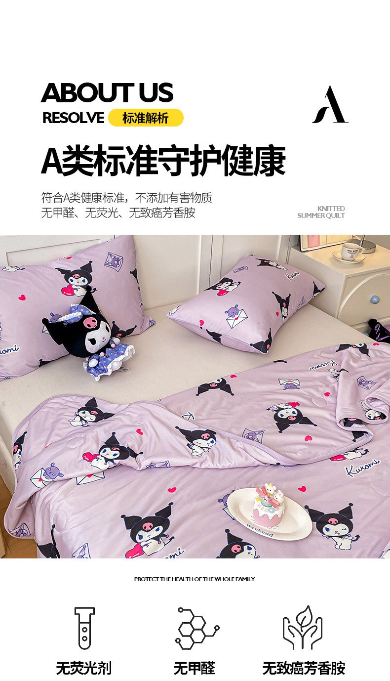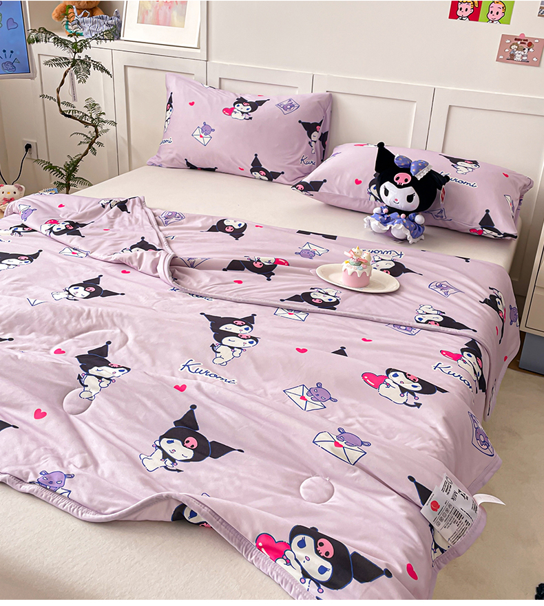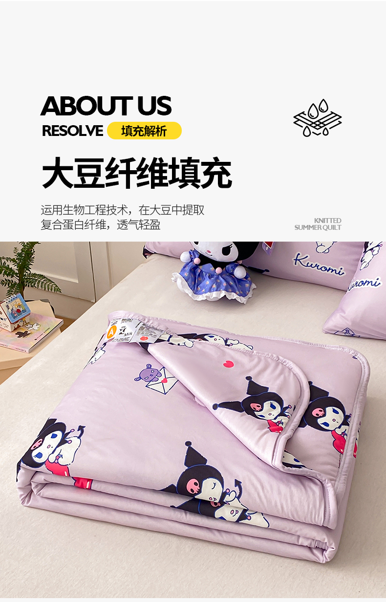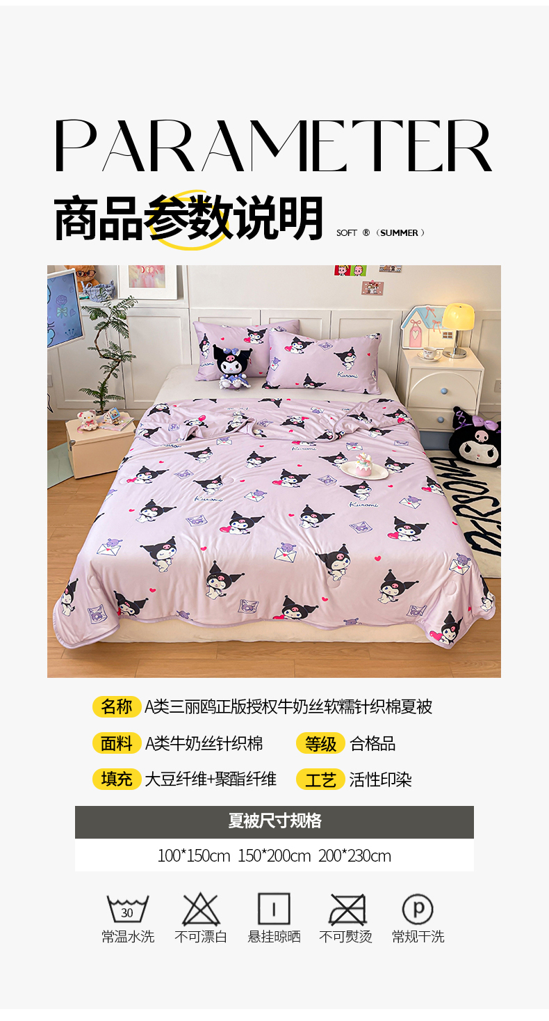 • 91家纺网 家纺一手货源 找家纺 桃子家居 2025新款A类三丽鸥正版授权高品质牛奶丝软糯针织棉大豆夏被系列 针织棉三丽鸥-紫色梦幻库洛米