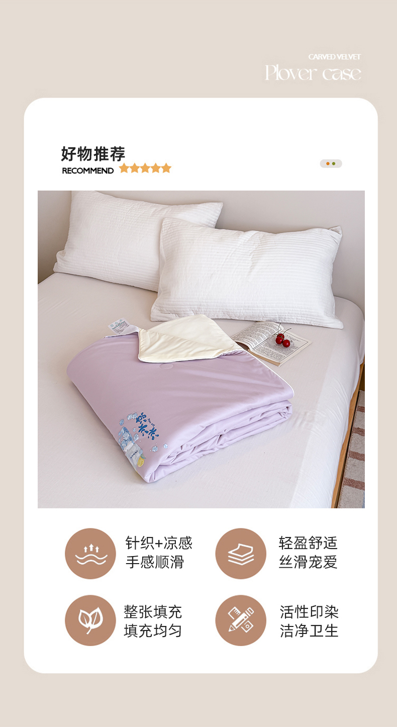 商品名称:亿莱鑫 2025新款7A抗菌针织凉感丝双感夏凉被 空调被 被子夏被 芋泥紫