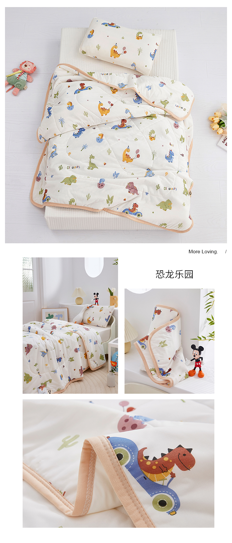商品名称:丝涟家居 2025新款A类卡通小清新双面印花凉感丝夏被恐龙乐园