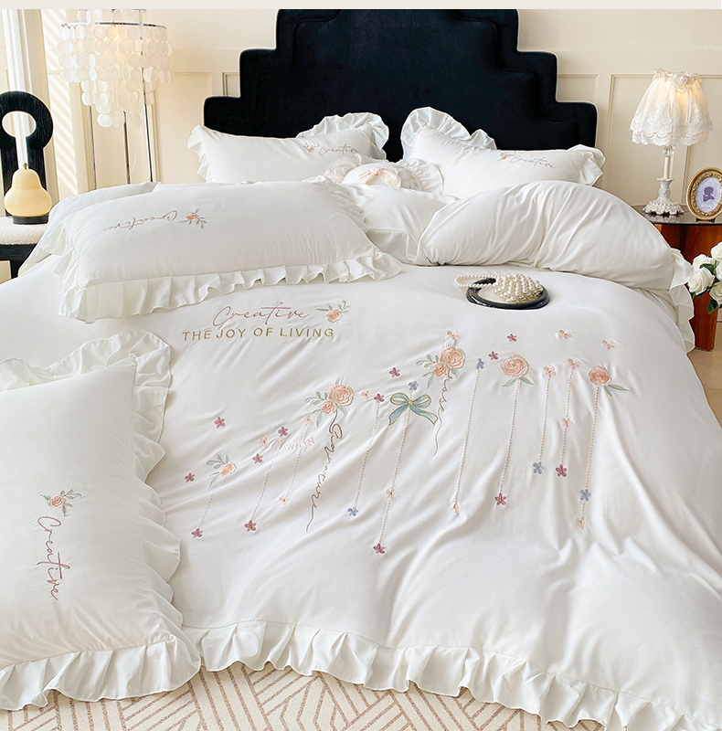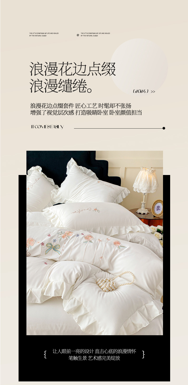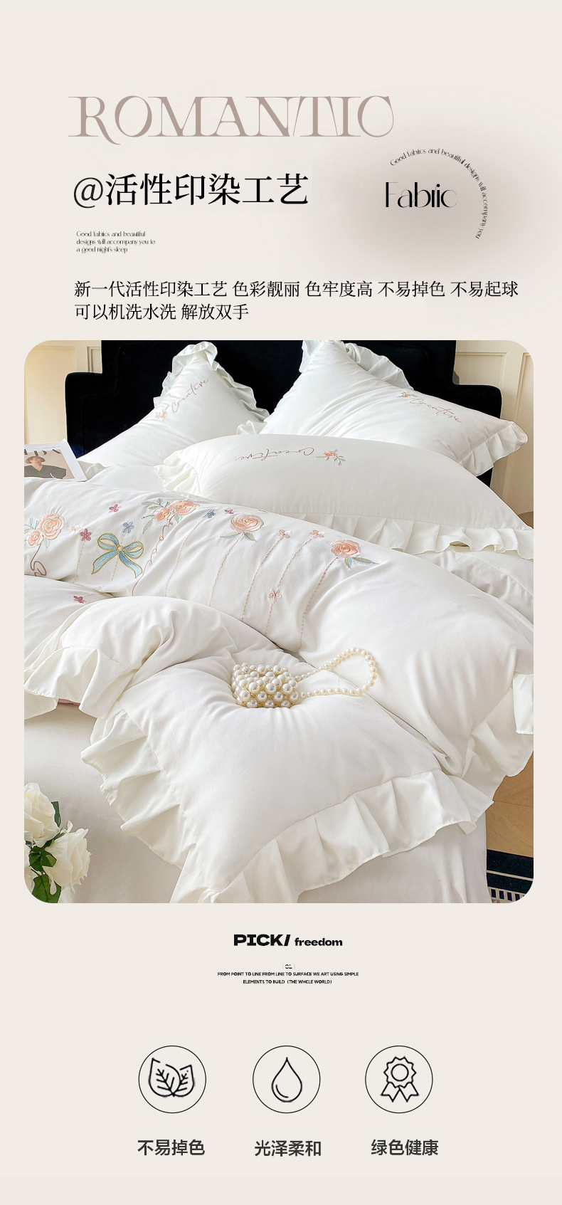 (总)帝菲妮 2025新款法式韩版高克重超柔水洗棉针织棉糯小棉刺绣四件套-玫瑰花语