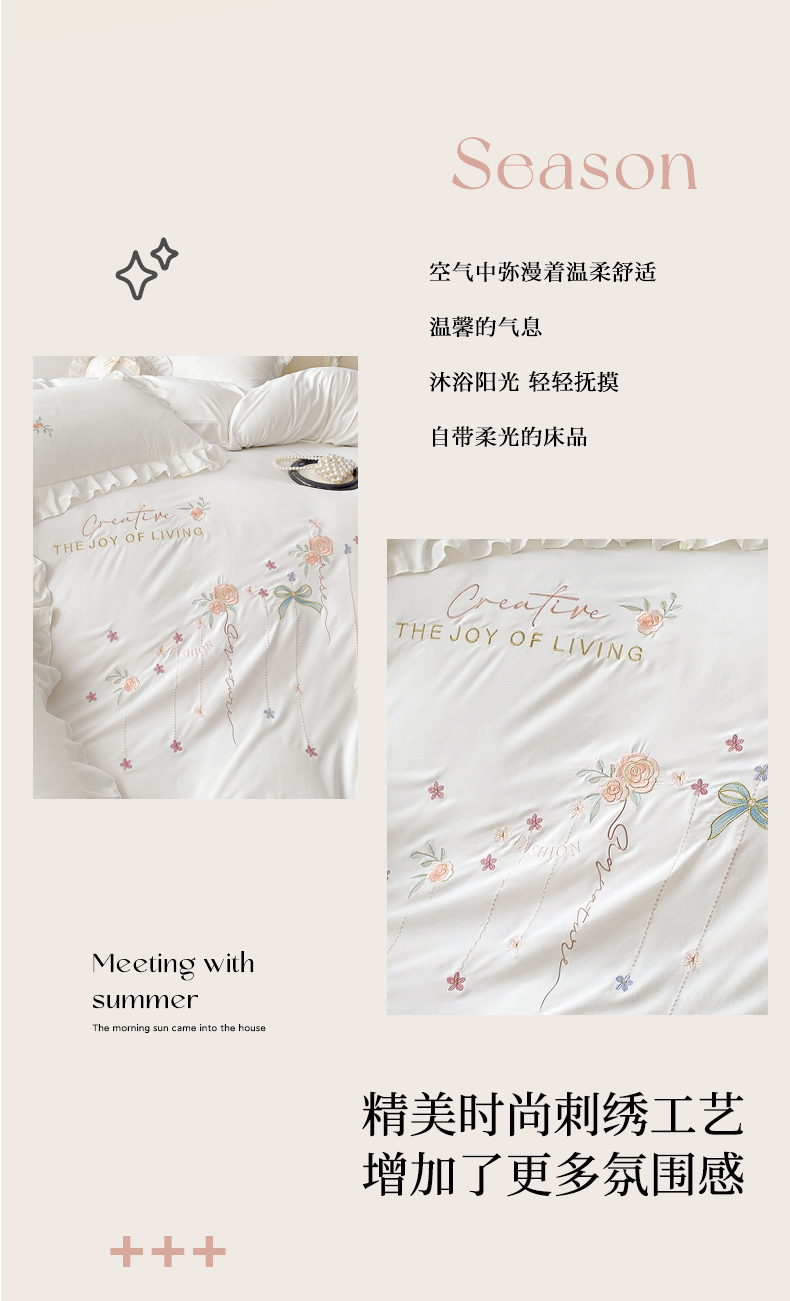 商品名称:(总)帝菲妮 2025新款法式韩版高克重超柔水洗棉针织棉糯小棉刺绣四件套-玫瑰花语