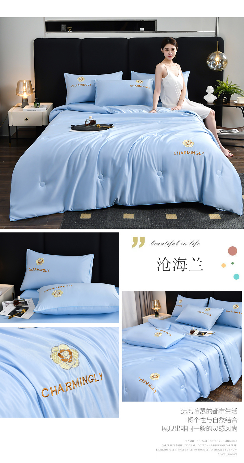 商品名称:优尚家纺 2025新款水洗天丝刺绣夏被夏被四件套 沧海兰