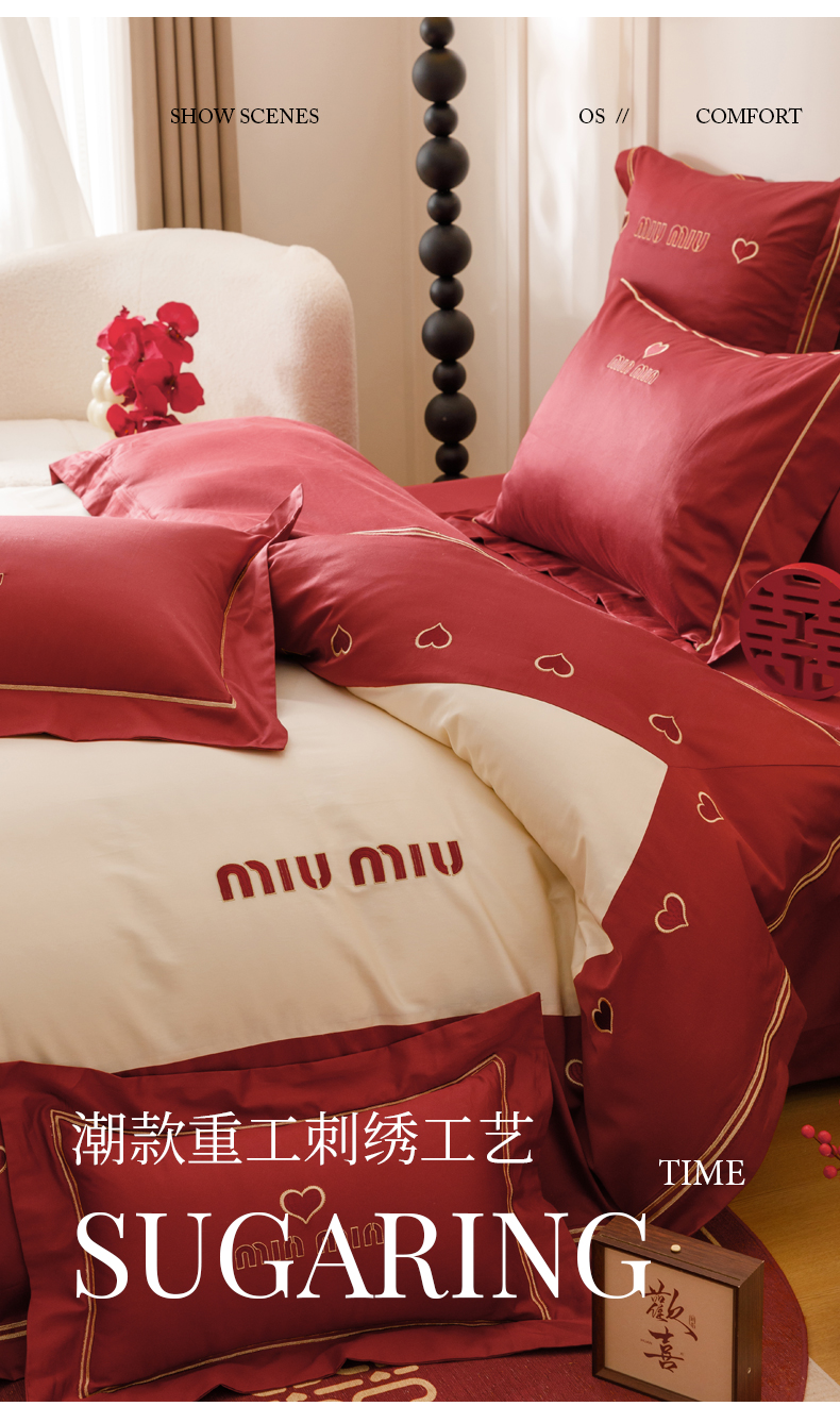 商品名称:慕晨2025新款50s澳棉全棉婚庆四件套控价卷后398元起 喜庆缪缪