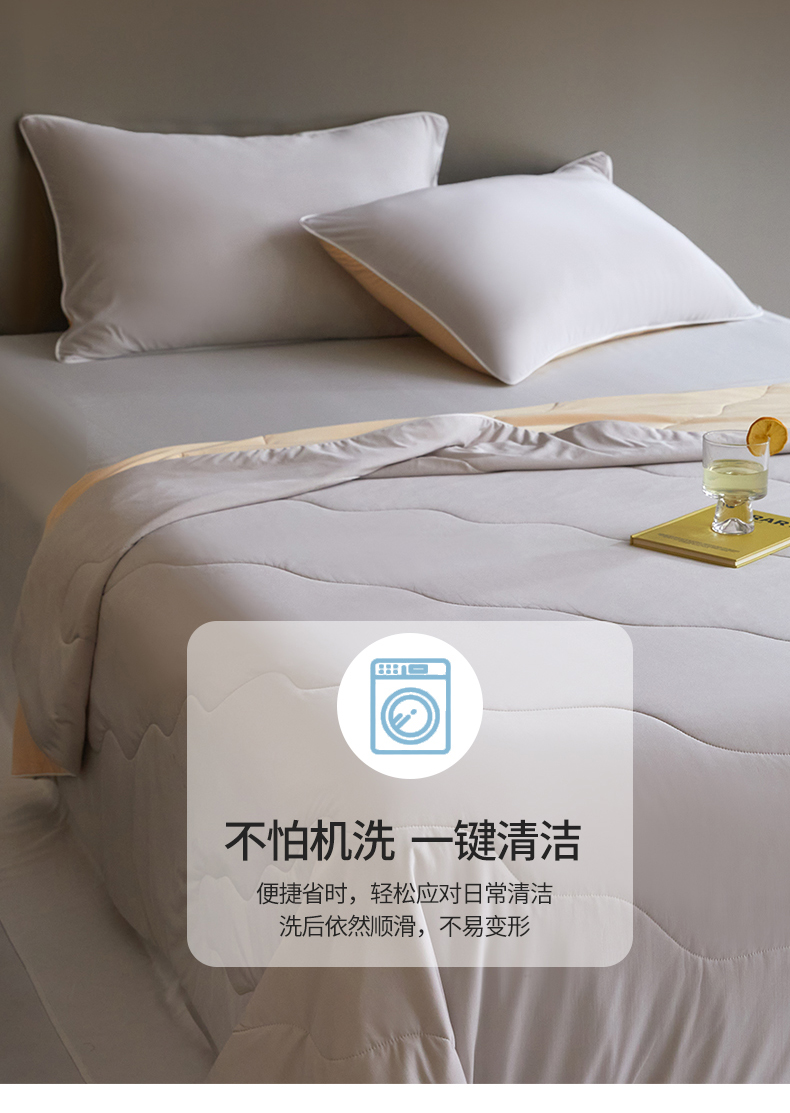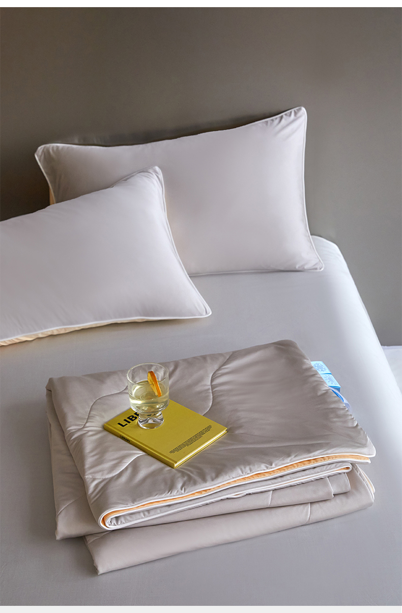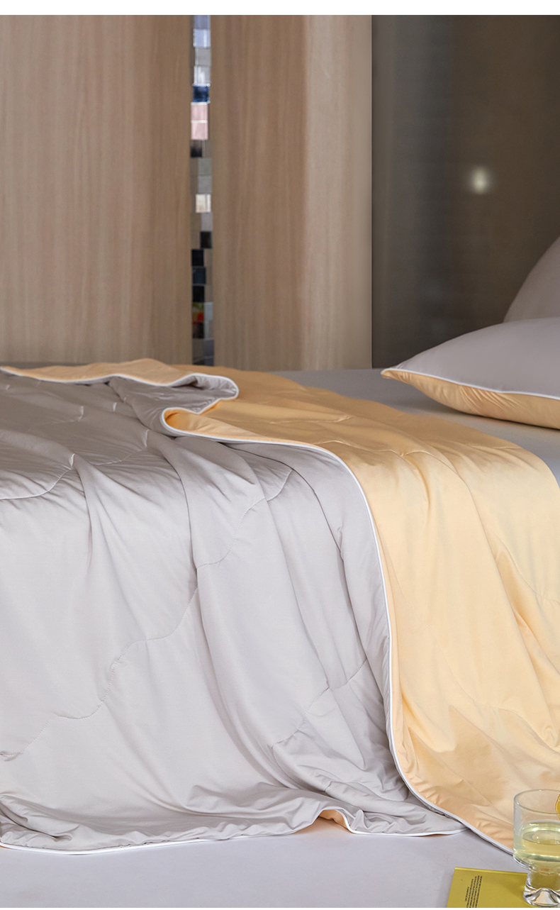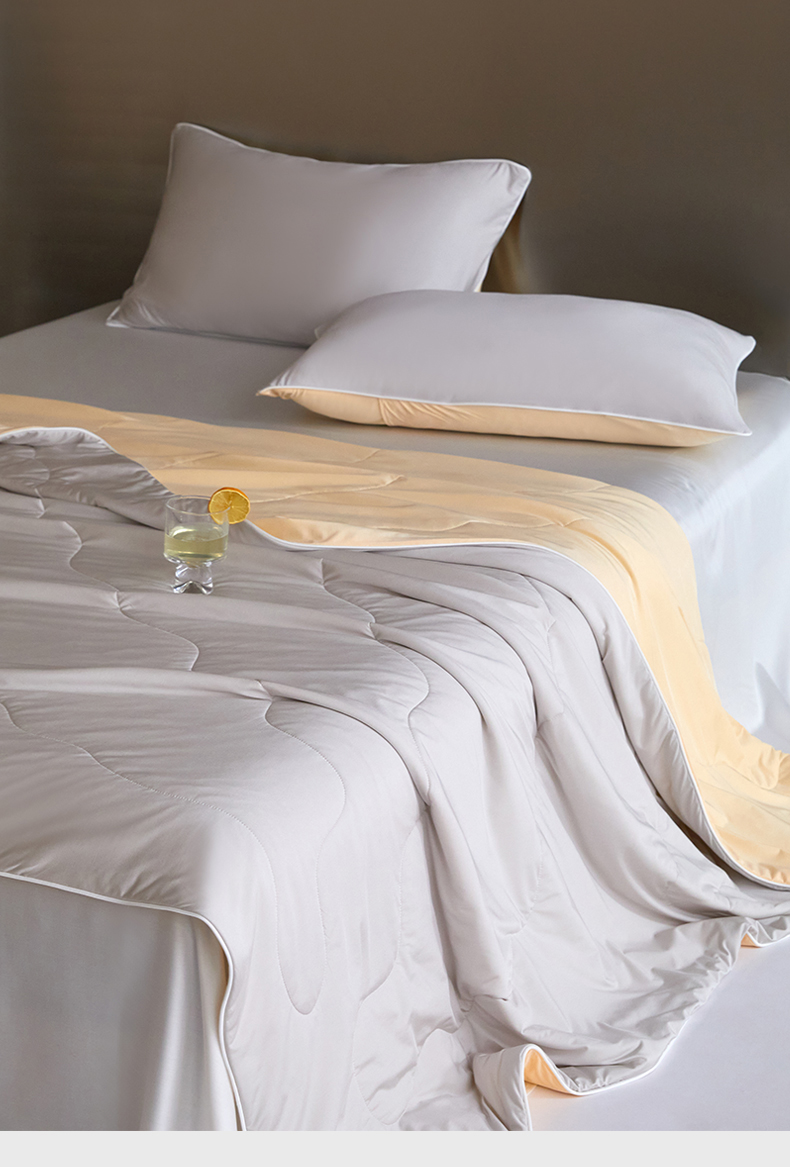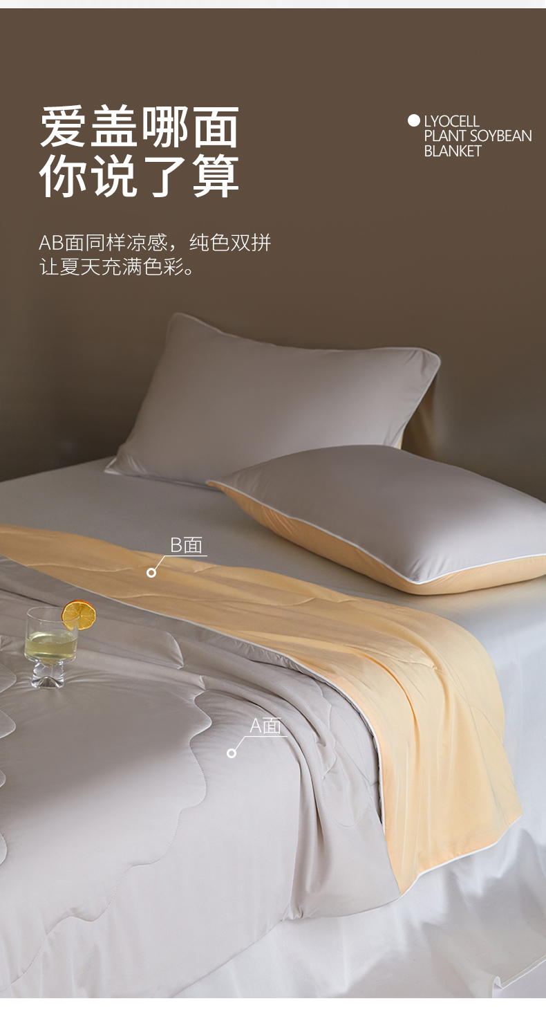 被子 > 夏被 > 头等舱 2025新款锦氨(165克)水光亮面锦A类55莱赛尔植物大豆7A抗菌夏凉被夏被-配礼盒(空镜图) 银灰+暖黄